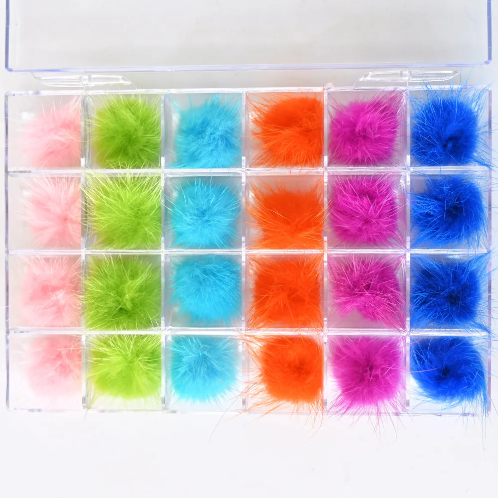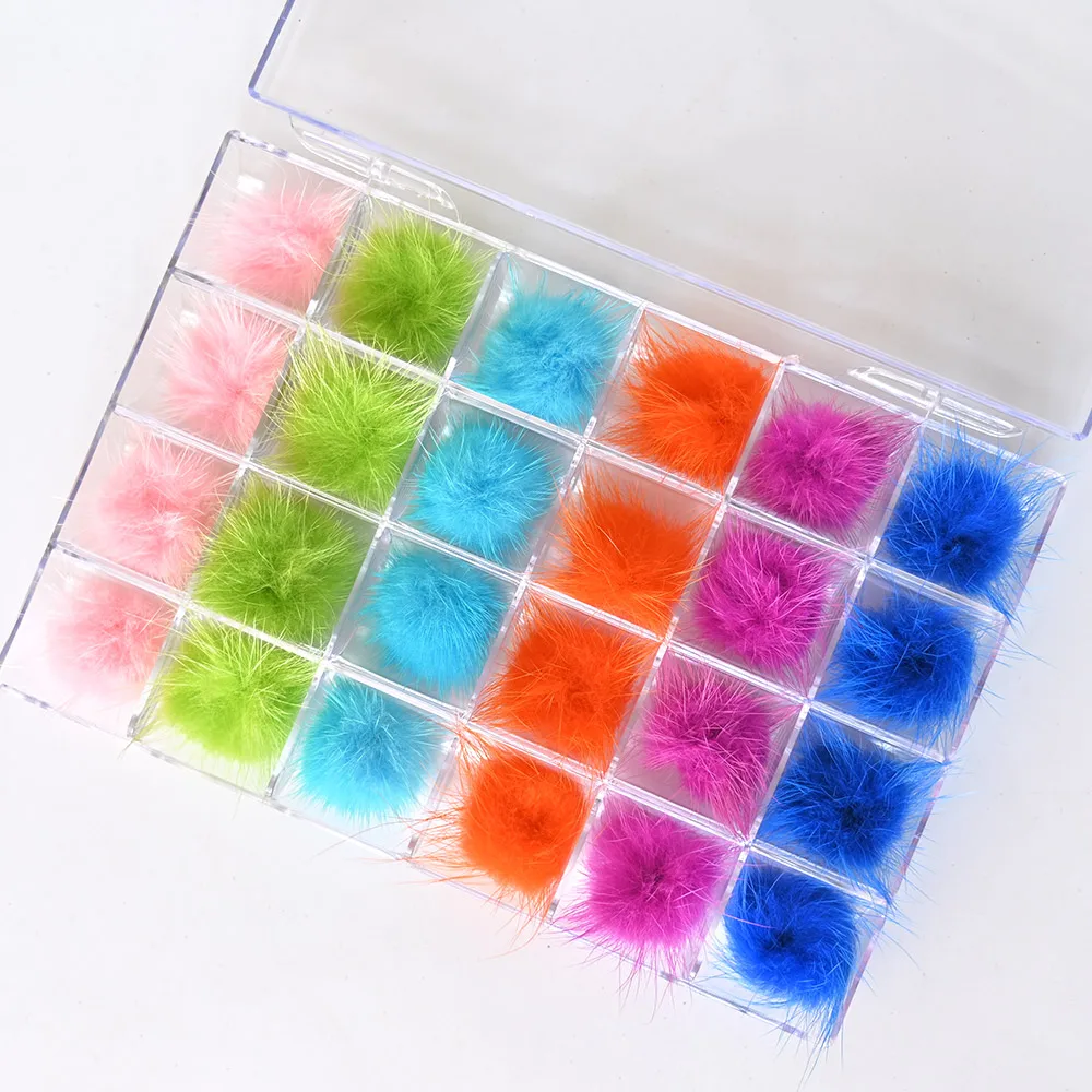 24 шт.кор. 2,7*2,7 см 6 видов цветов меховой шар Шарм 3D мягкие помпоны Стразы с магнит притягивает BaseSoft пушистый помпон