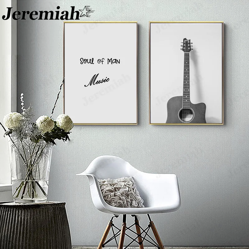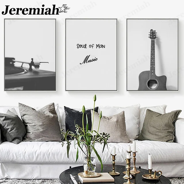 Скандинавская музыка, художественный холст, плакат, простая черно-белая гитара, фонограф, живопись, Современный домашний декор, аксессуары