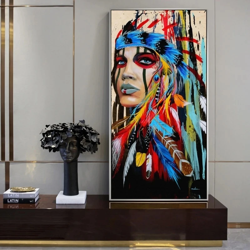 Граффити индийская девушка холст фотография акварель индийская женщина с перьями плакаты и принты для декора гостиной