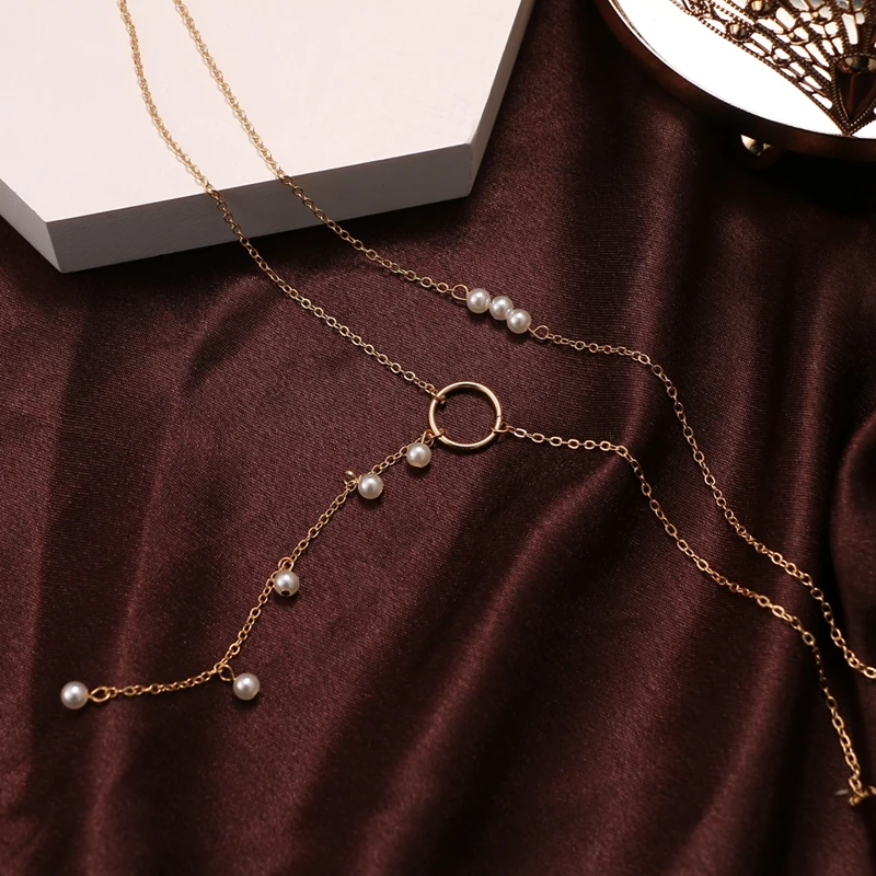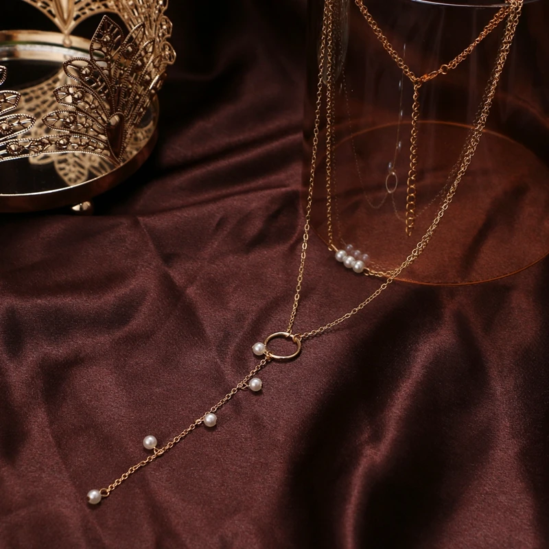Женское длинное ожерелье с жемчугом, многослойное ожерелье с жемчуж...