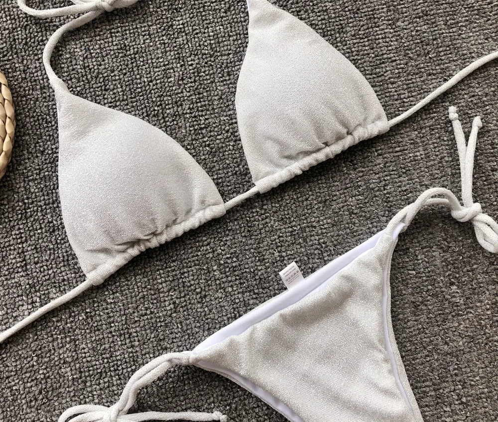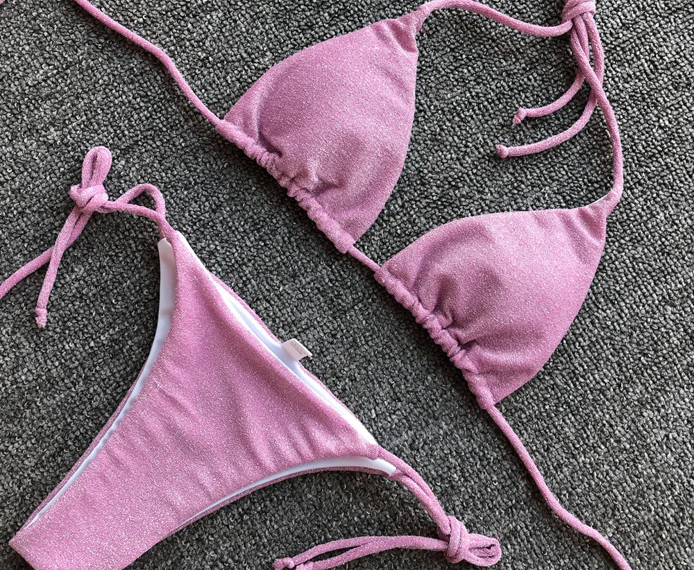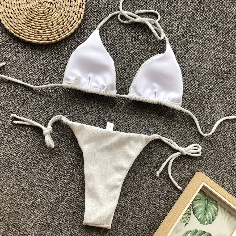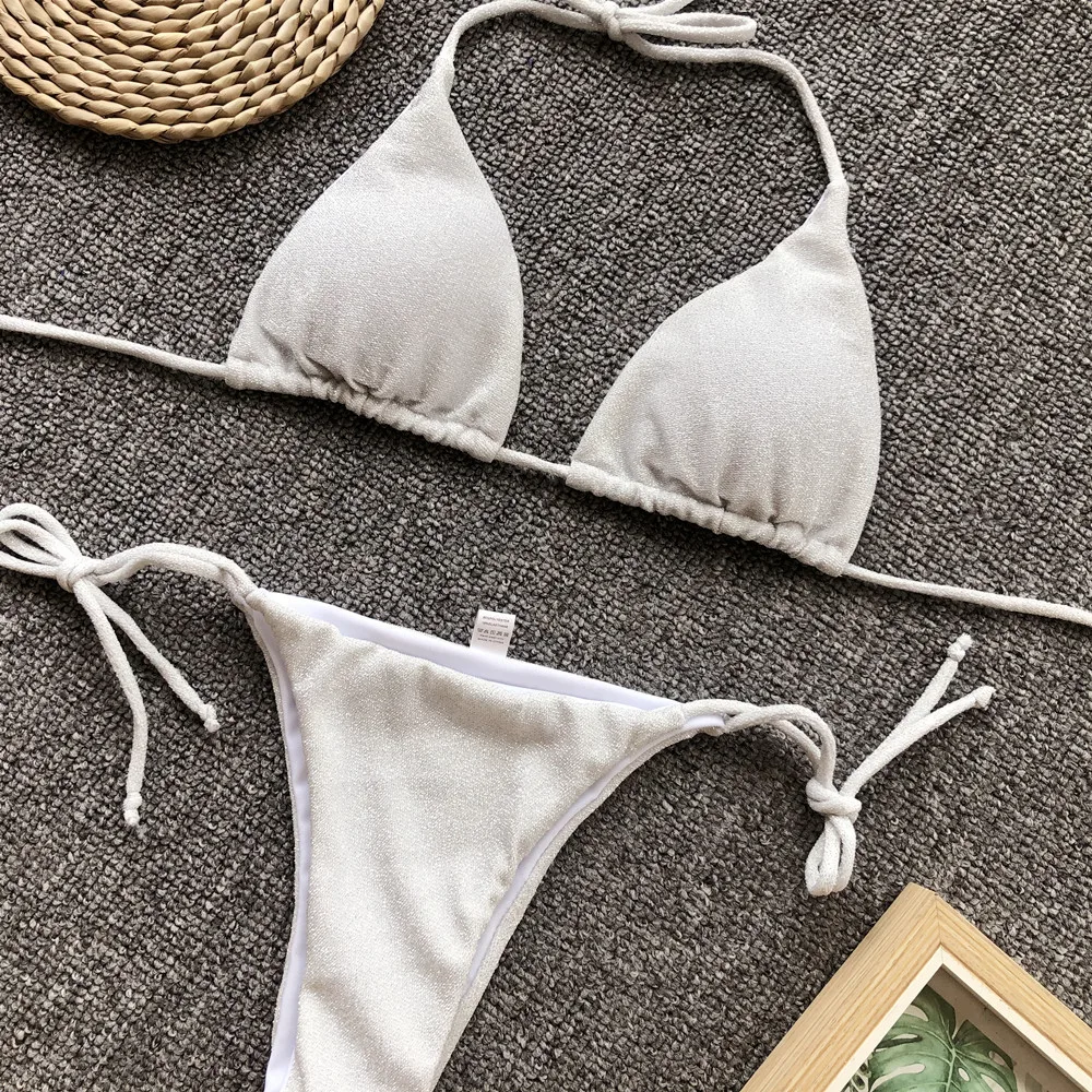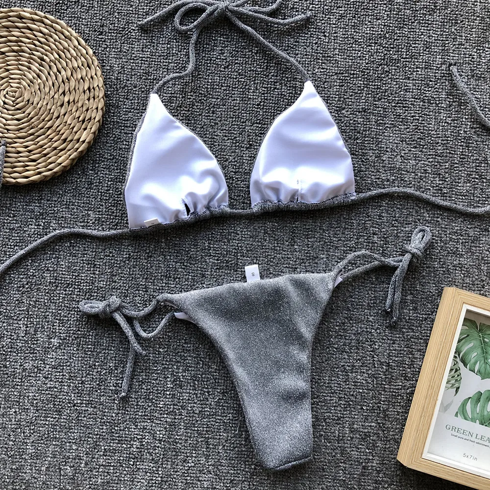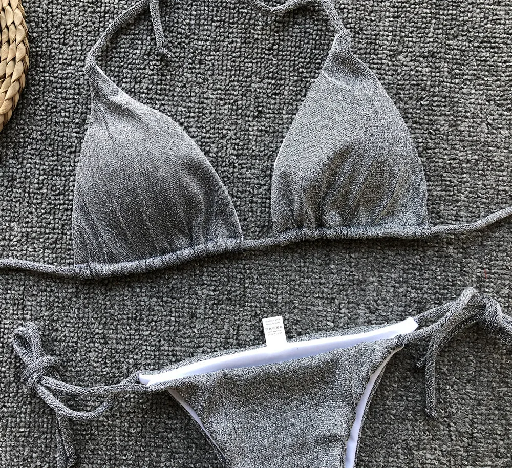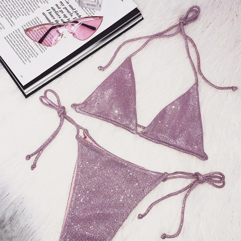 Новый Блестящий сверкающий бикини женский купальник 2021 женский купальник комплект из двух частей бикини Холтер купальный костюм