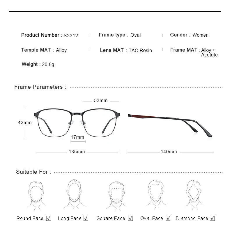 Оправа для очков Мужскаяженская из титанового сплава , S2252