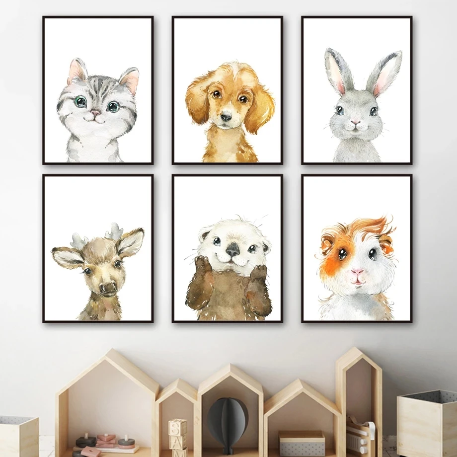Кролик, кошка, собака, морская свинка, лось, Выдра, роспись на холс...