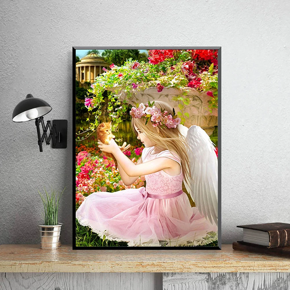 Картина из страз 5D мультяшная красивая девушка, цветок, Сказочная ...