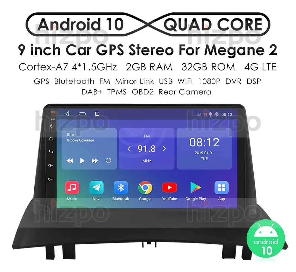 Автомагнитола 2 Din для Renault Megane 2 2002-2009, 4G, стерео, GPS...