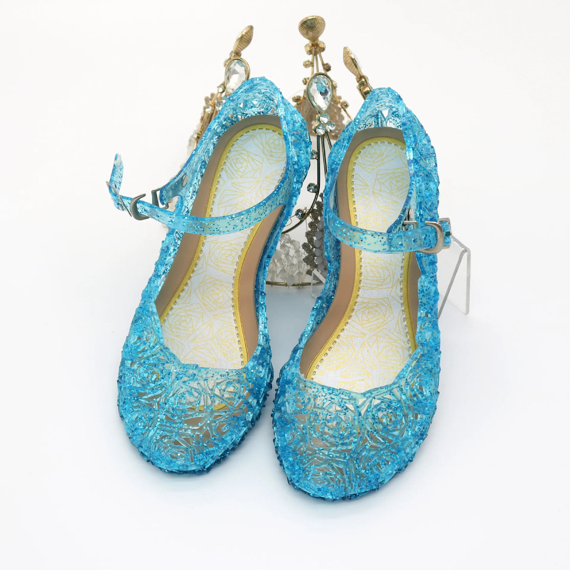 Сандалии-желе для девочек, босоножки на высоких каблуках с кристаллами, обувь для косплея принцессы вечерние обувь для танцев и вечеринок, лето