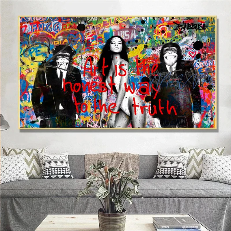 БОЛЬШИЕ ХУДОЖЕСТВЕННЫЕ плакаты Бэнкси, забавные картины с обезьянами и девушками, холст с граффити, настенные картины для современное оформление помещения