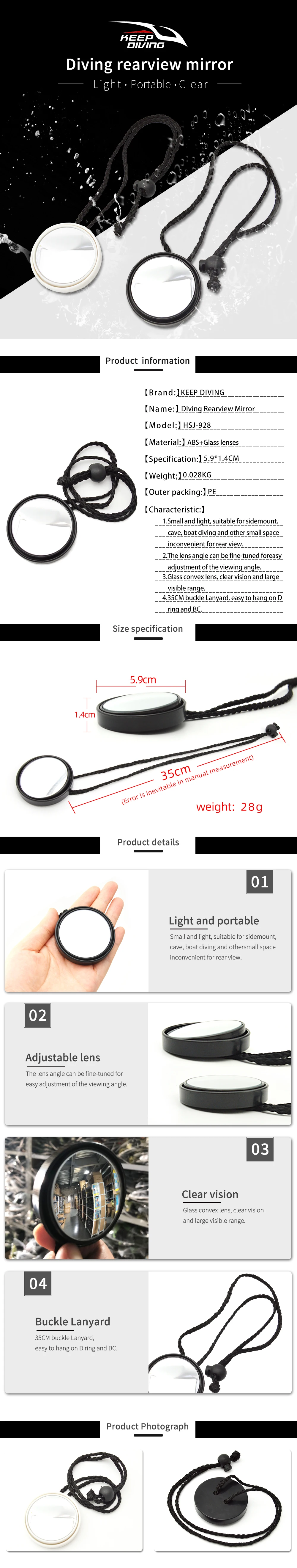 Портативное Панорамное зеркало заднего вида для подводного погружения с регулируемым зеркалом заднего вида с веревкой, безопасные аксессуары для плавания