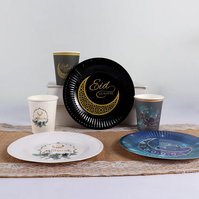 Украшения на Рамадан товары для вечерние ИД Мубарак бумажная тарелка чашка баннер воздушные шары для Рамадана Мубарак ИД декор для вечевечерние НКИ мусульманская польза
