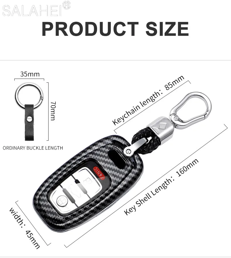 Цвет: цвет насыщенныйМатериал: углеродное волокно ABSУниверсальный Подходит для: AudiОсобенности: Простая установка, гарантия высокого качества, сильная защита, не влияет на сигнал ключаПосылка включает в себя:1 x чехол для автомобильного ключа (без автомобильного ключа)Примечание:Пожалуйста, проверьте форму ключа, прежде чем сделать заказ, спасибо!