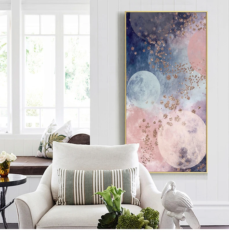 Абстрактный пейзаж, настенная живопись на холсте, розовый небесно-г...