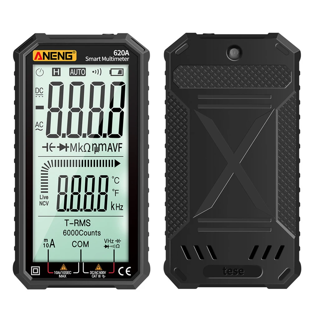Цифровой мультиметр ANENG 620A, портативный мультиметр с ЖК-дисплеем, 6000 отсчетов, автоматический выбор диапазона, Вольтметр постоянного и переменного тока, измеритель частоты температуры и бесконтактного индикатора напряжения
