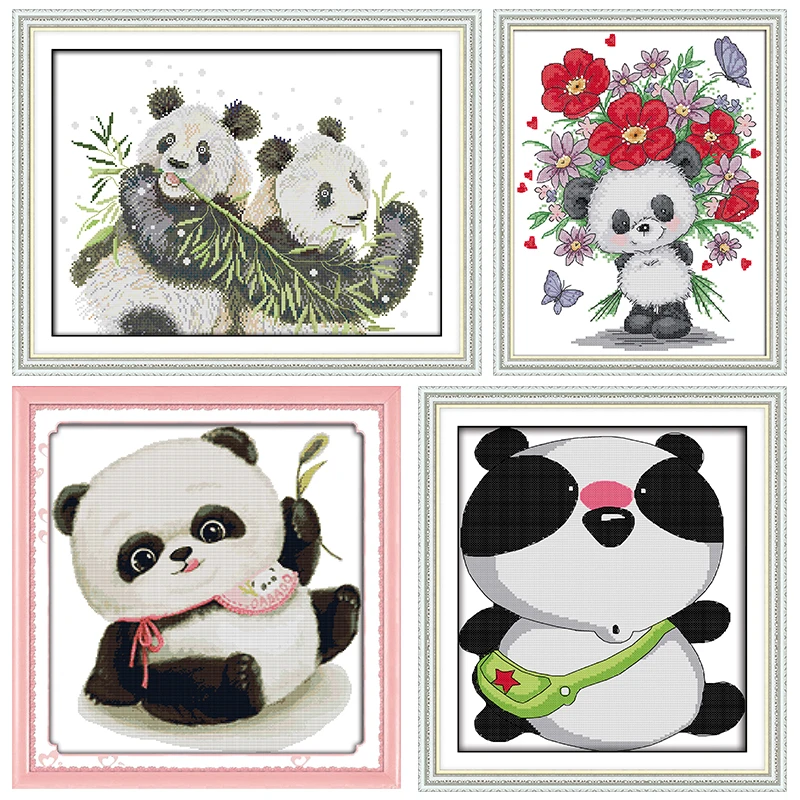 Картина для вышивки Joy Sunday, Набор для вышивки крестиком с двумя пандами, печать животных 11CT 14CT, ручная работа