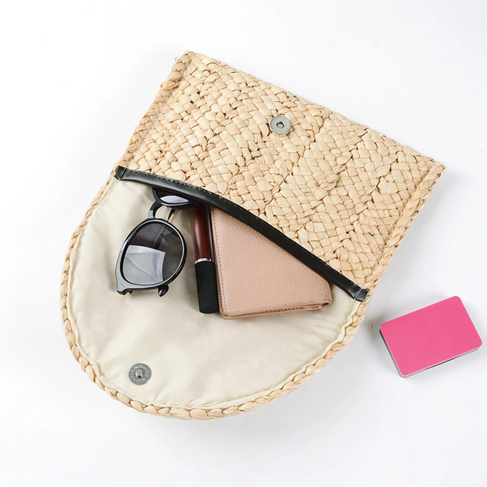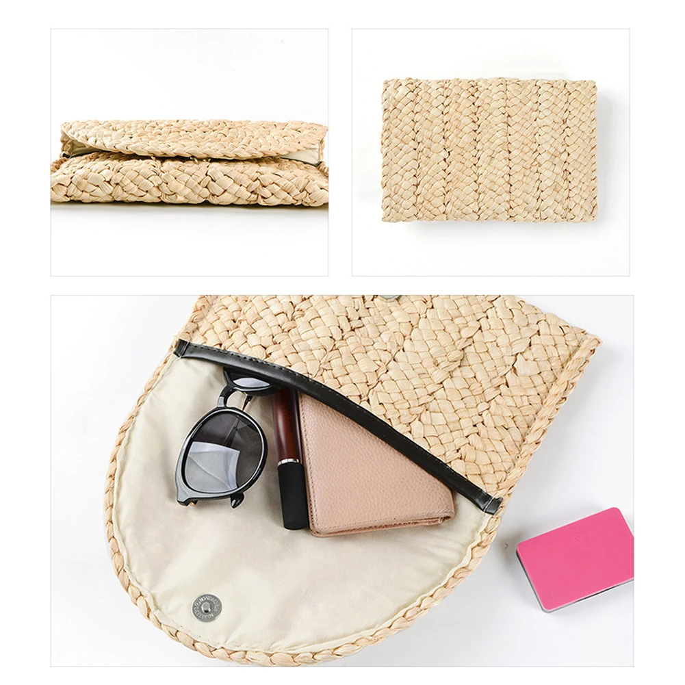 Женская пляжная сумка для отдыха, летний ручной Плетеный клатч из ротанга, женская Соломенная вязаная сумка, 2021 вечерние сумки-конверты, повседневные кошелькиХарактеристика:Клатч из кукурузы, тканая Повседневная сумка, портмоне, косметичка.Замок с откидной кнопкой.Подходит для лета, пляжа. Спецификация:Товар: тканый клатч из кукурузыОсновной материал: кукурузная кожаПодкладка: полиэстерРазмер: 260*160 мм/10,24*6,3 дюймаПол: женщинПрименение: клатчПовод: каждый день, отдых, шопинг, путешествия Примечание:В связи с различиями мониторов и эффектами освещения реальный цвет товара может немного отличаться от цвета на фотографиях. Спасибо!Возможны отклонения в 1-3 мм вследствие измерений вручную.