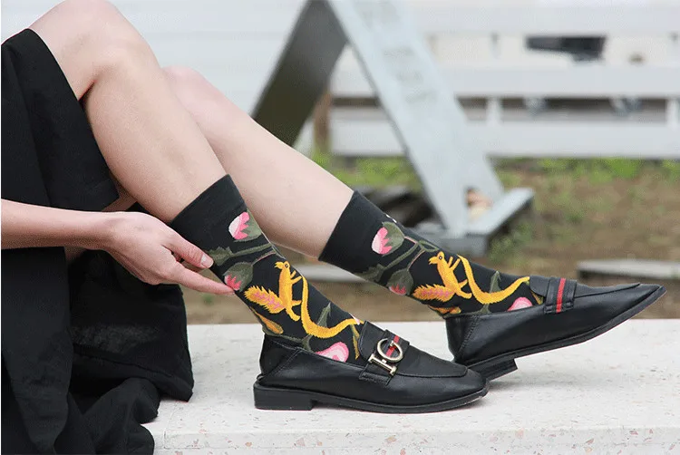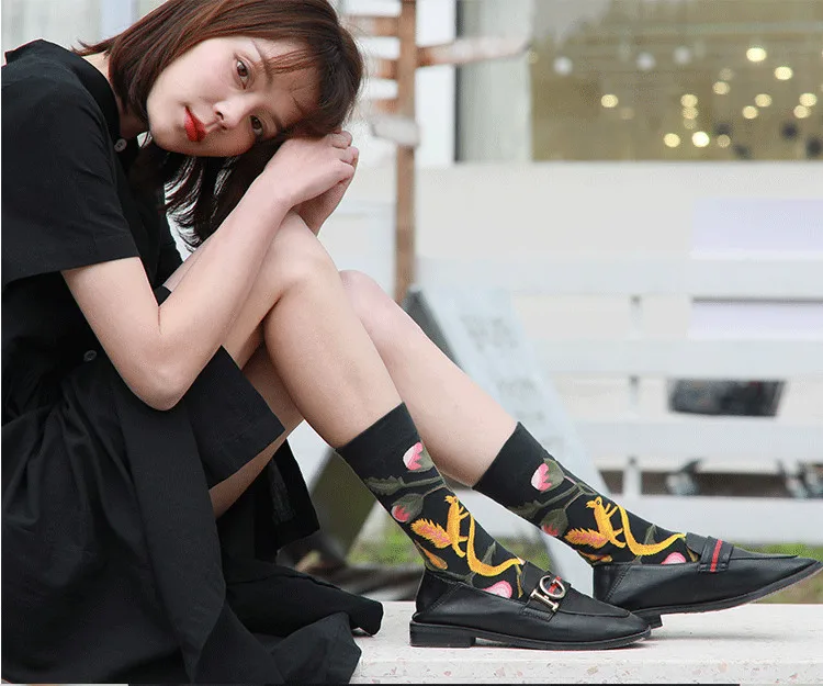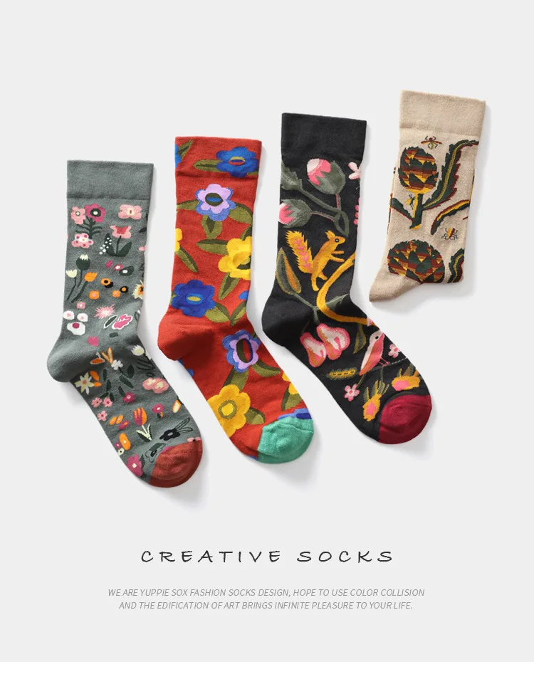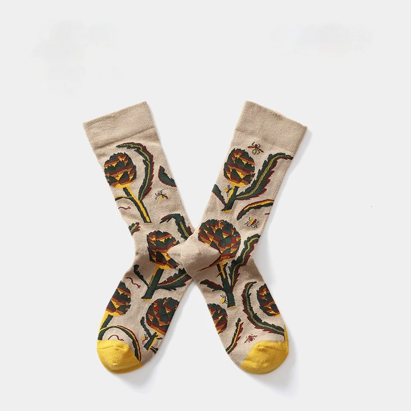 Носки женские, мужские, жаккардовые, дышащие, из чесаного хлопка