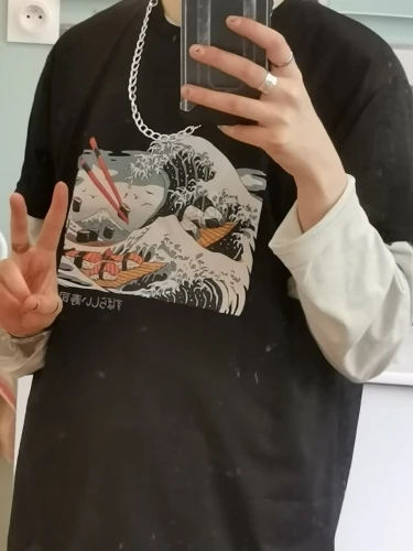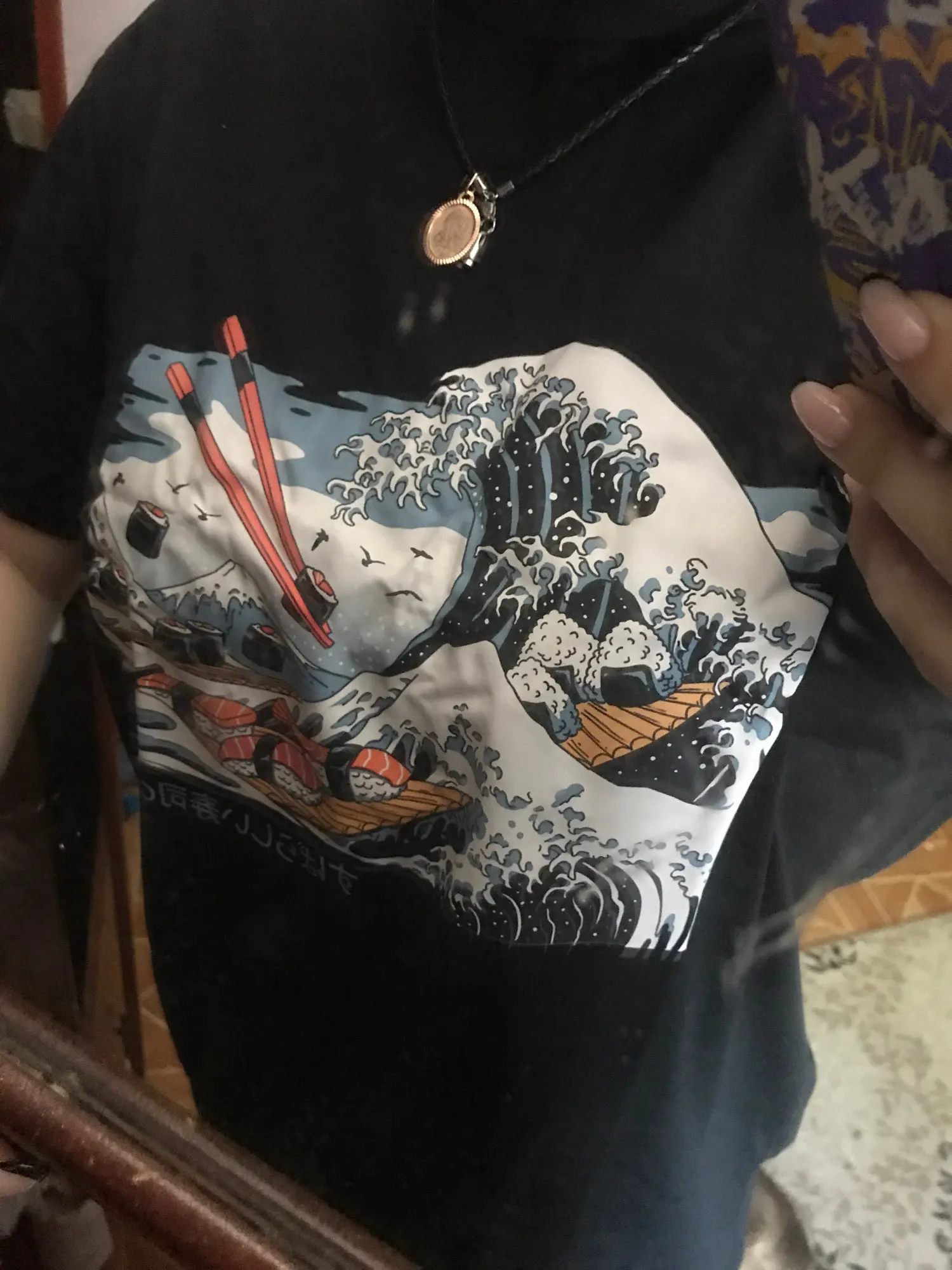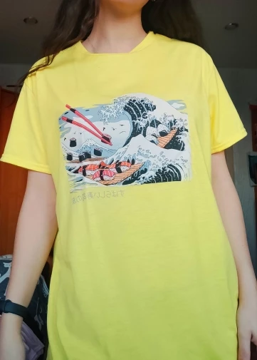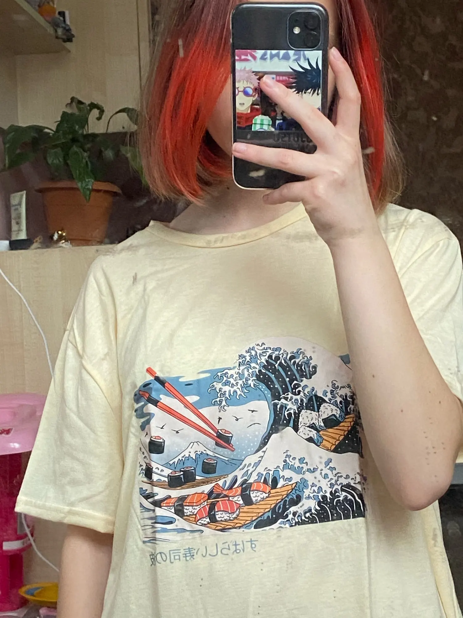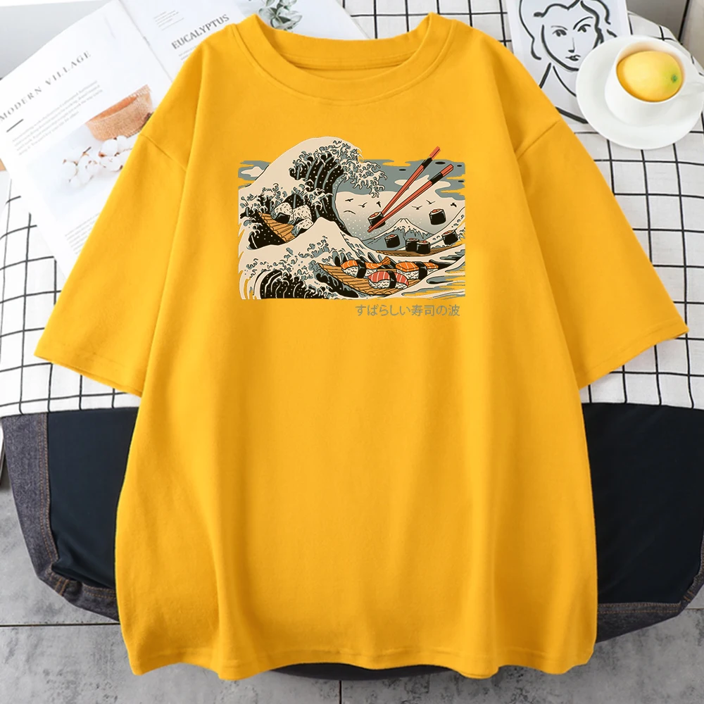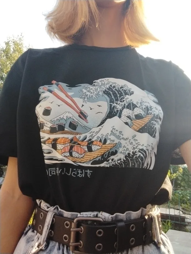 Женская футболка с принтом в стиле комиксов The Great Sushi Wave в Японии, модная одежда с круглым вырезом, футболка большого размера в стиле Харадзюку, дышащие топы