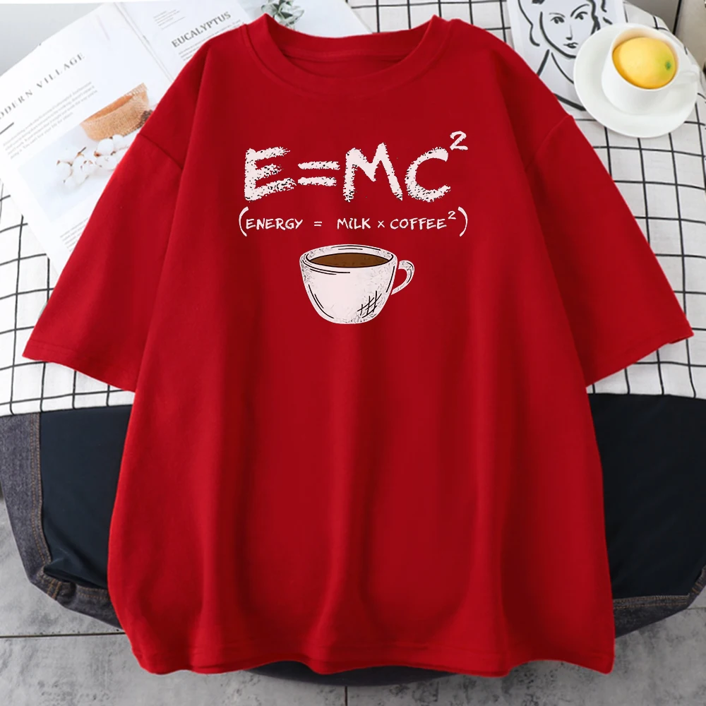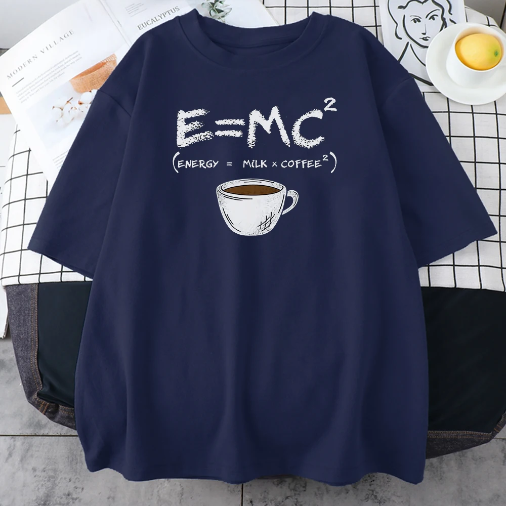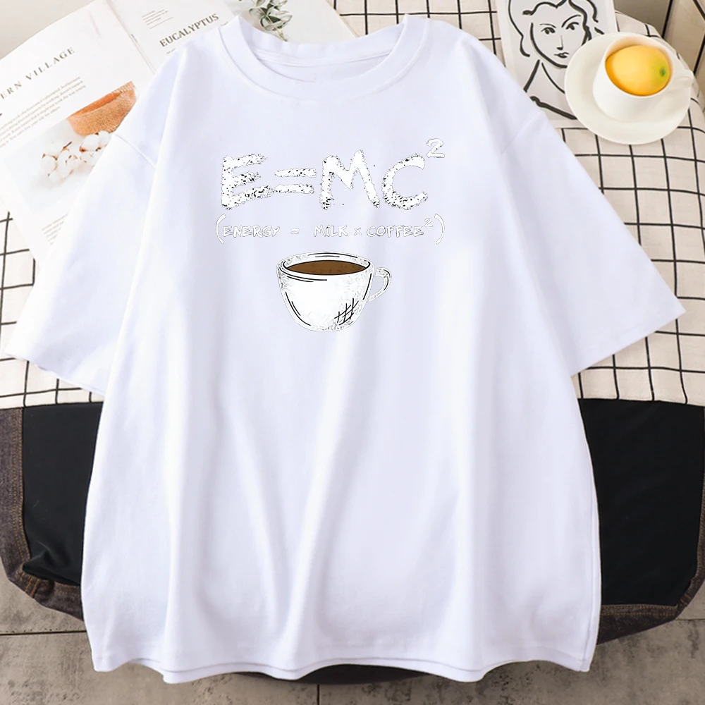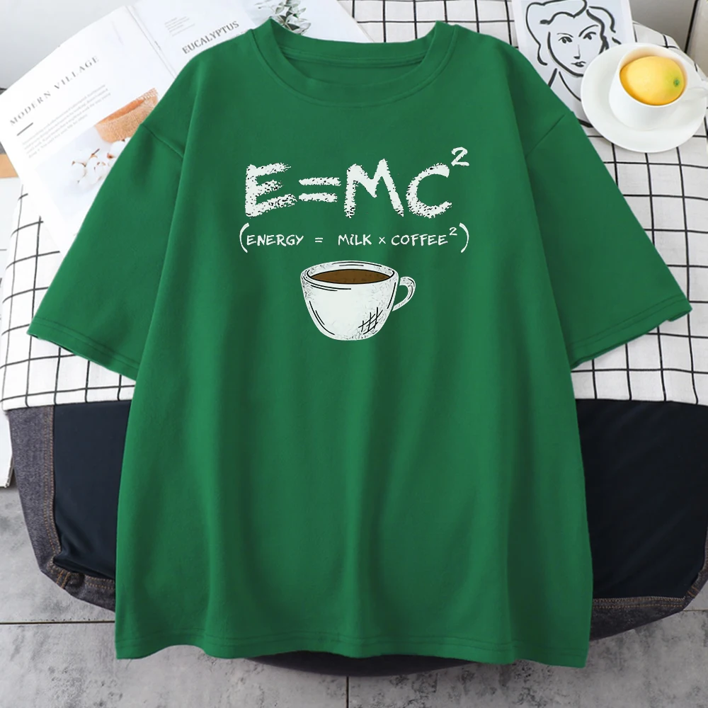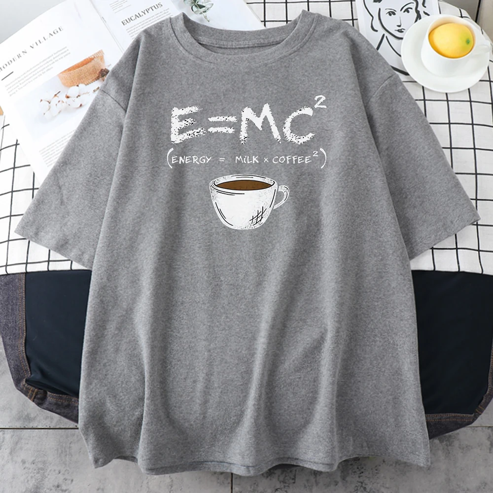 Футболка женская с принтом energy = milk + coffee, модная повседневная простая дышащая футболка свободного покроя, в стиле Харадзюку, на лето