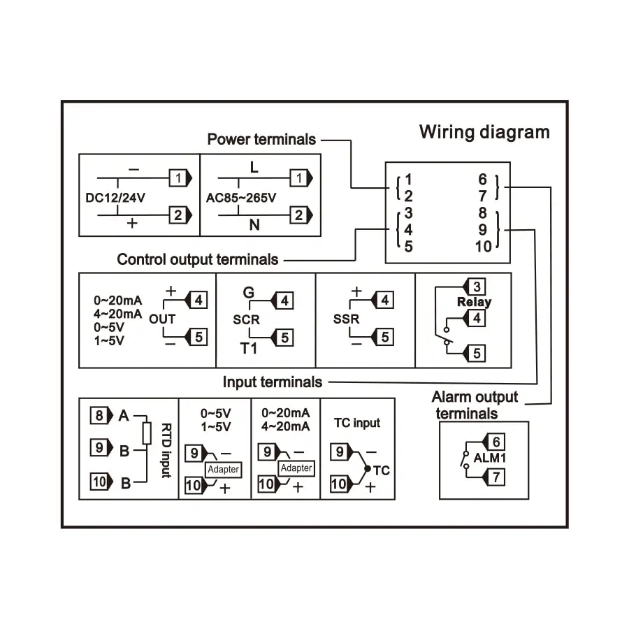Это универсальный цифровой программируемый контроллер температуры с двойным дисплеем, который поддерживает множество типов датчиков термопары.