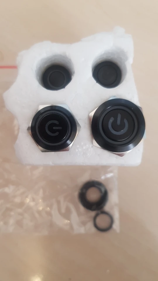 Спасибо продавцу за быструю доставку товара! Кнопки заказывал большие 22 мм. Нажимаются мягко. Хотелось бы что бы подсветка была бы по ярче. В целом своих денег стоят.