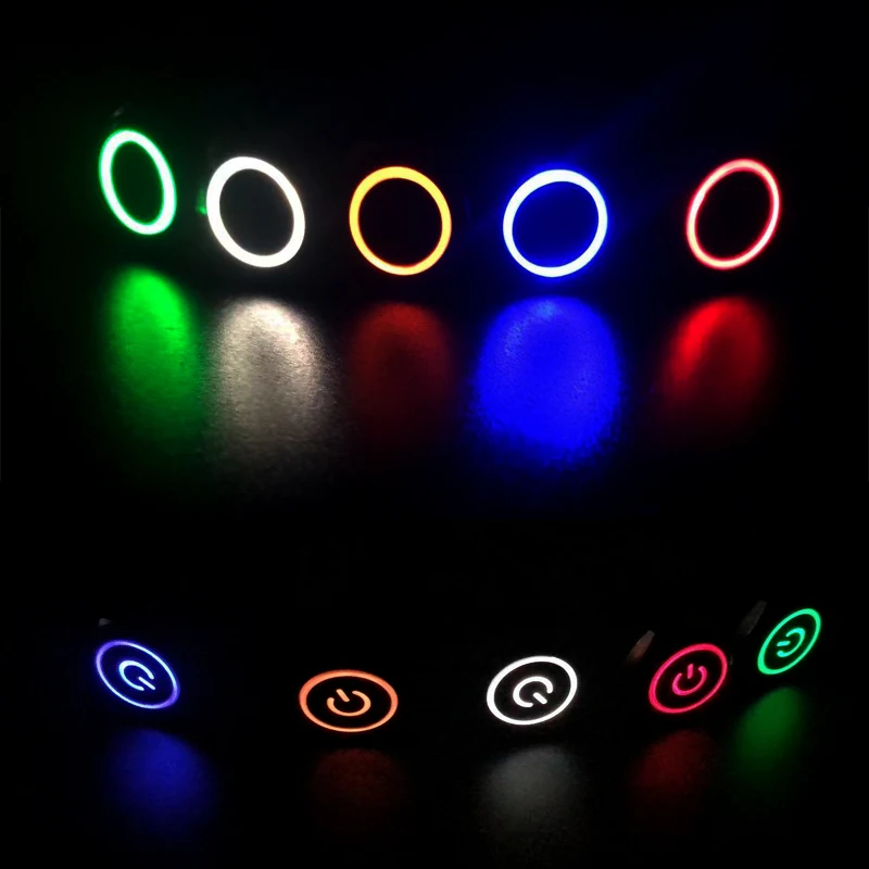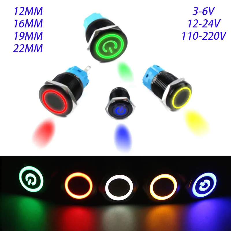 12161922 мм Водонепроницаемая металлическая кнопка Светодиодный светильник, мгновенная Блокировка, переключатель питания двигателя автомобиля, 5 в 12 В 24 В 220 В, красный и синий