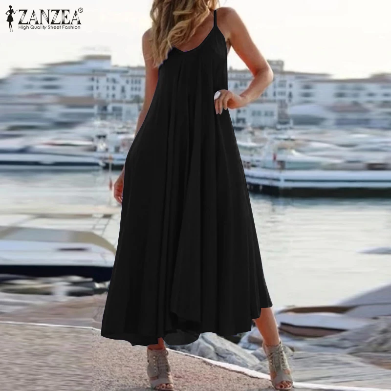 Платье ZANZEA женское на бретелях, комбинезон до середины икры, повседневный Однотонный сарафан без рукавов, праздничный халат оверсайз, лето 2022