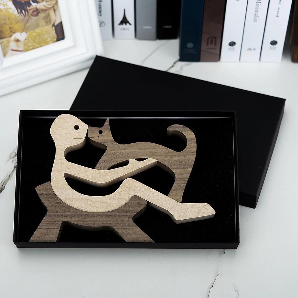 Прекрасный Деревянный Кошка смолы орнамент с изображением собак украшения дома маленькие резьба по дереву, животные орнамент офисный стол подарок Прямая поставка