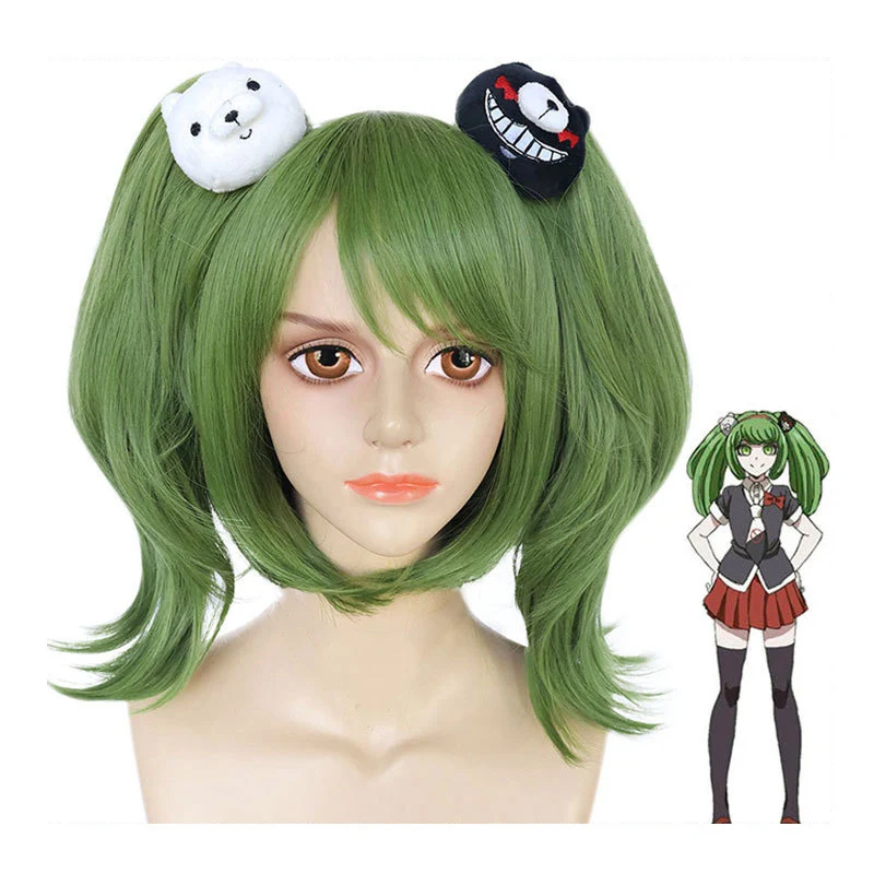 Парик Danganronpa Monaka с заколки с медведем головной убор Косплей Костюм Dangan Ronpa синтетические волосы Monaca Towa женские хвостики парики