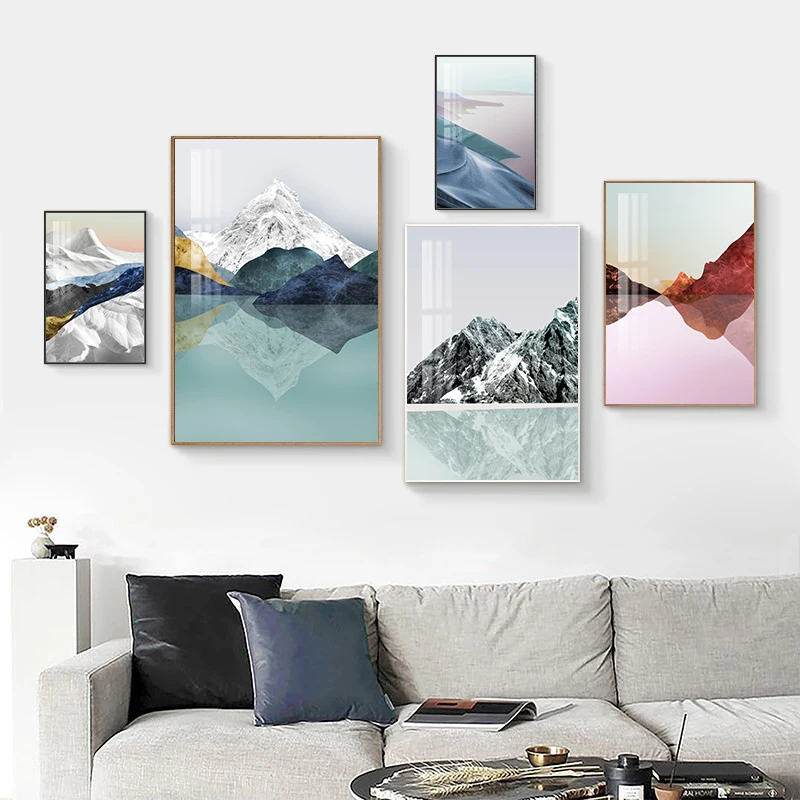 Картина на холсте с природным пейзажем, современный абстрактный настенный постер с изображением гор и озер, декоративная картина для гостиной, домашний декор