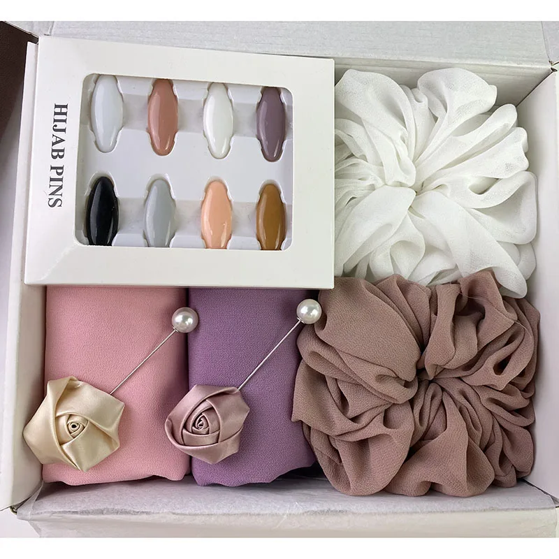 Подарочный набор для хиджаба, брошь, заколки и пузырьки, шифоновые хиджабы, набор длинных хиджабов для женщин