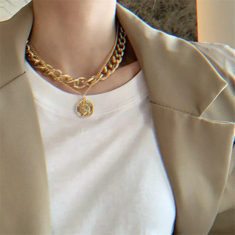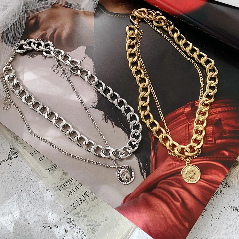 Винтажная многослойная цепочка-чокер для женщин, ожерелье золотистого и серебристого цвета, массивная цепочка с портретом, подарочное Ювелирное Украшение