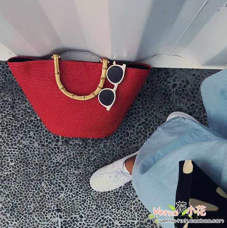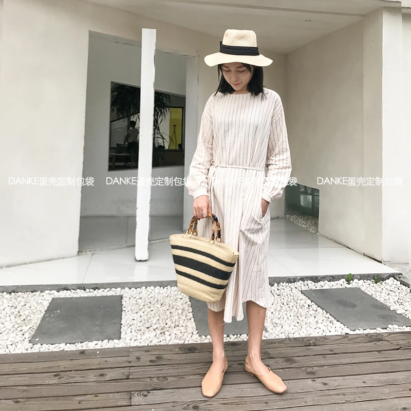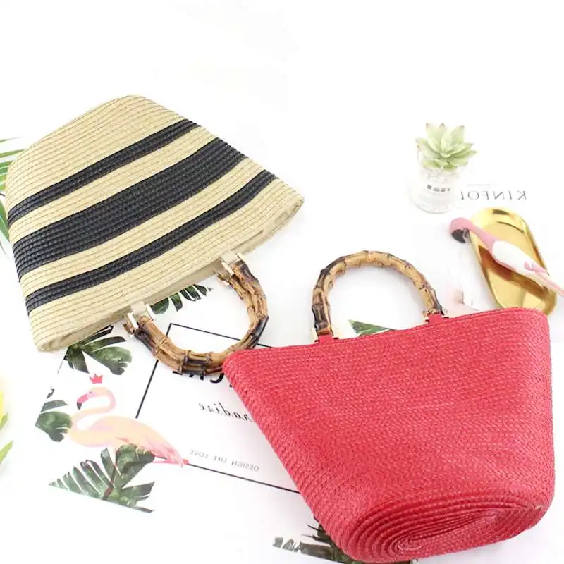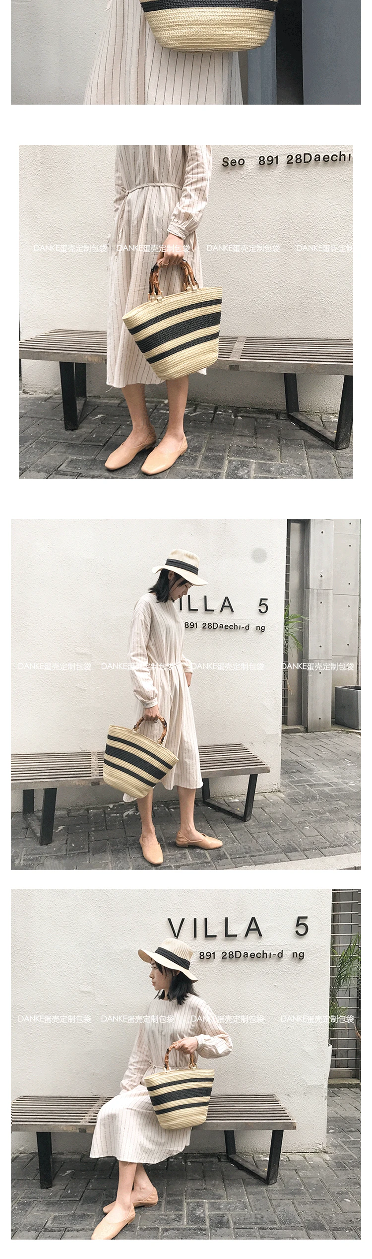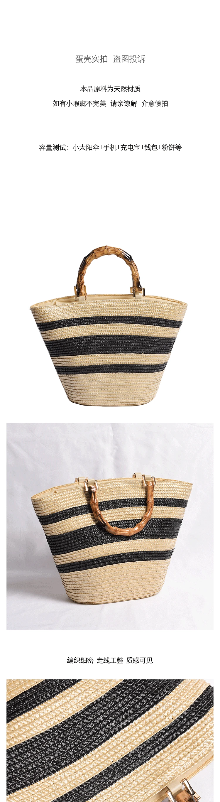 Модные женские сумки с бамбуковыми ручками, Повседневная полосатая Сумка-мешок, вместительные соломенные сумки из ротанга, плетеная Летняя Пляжная дорожная сумка