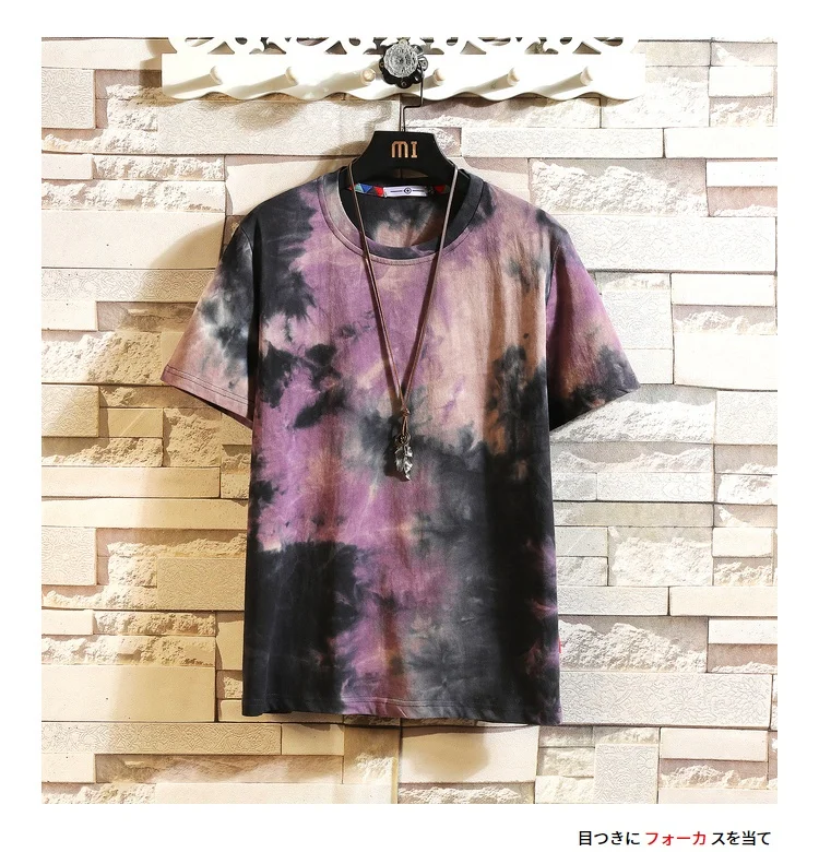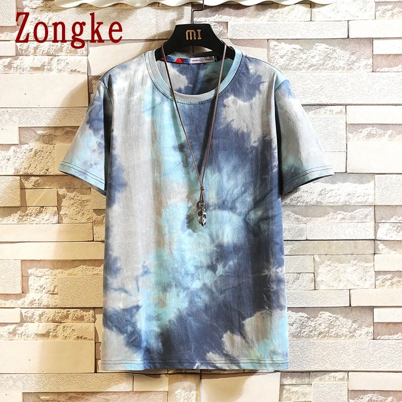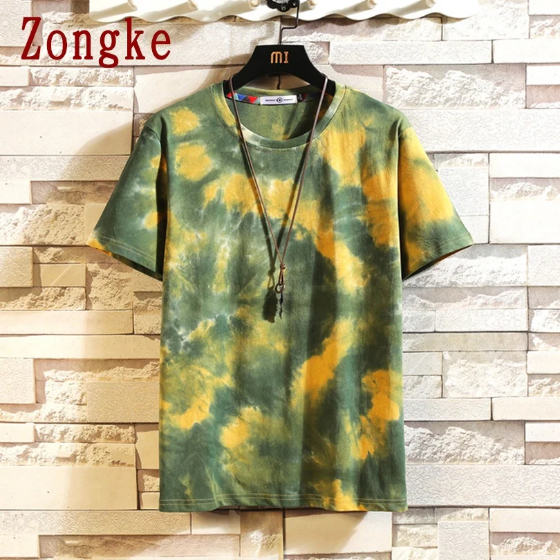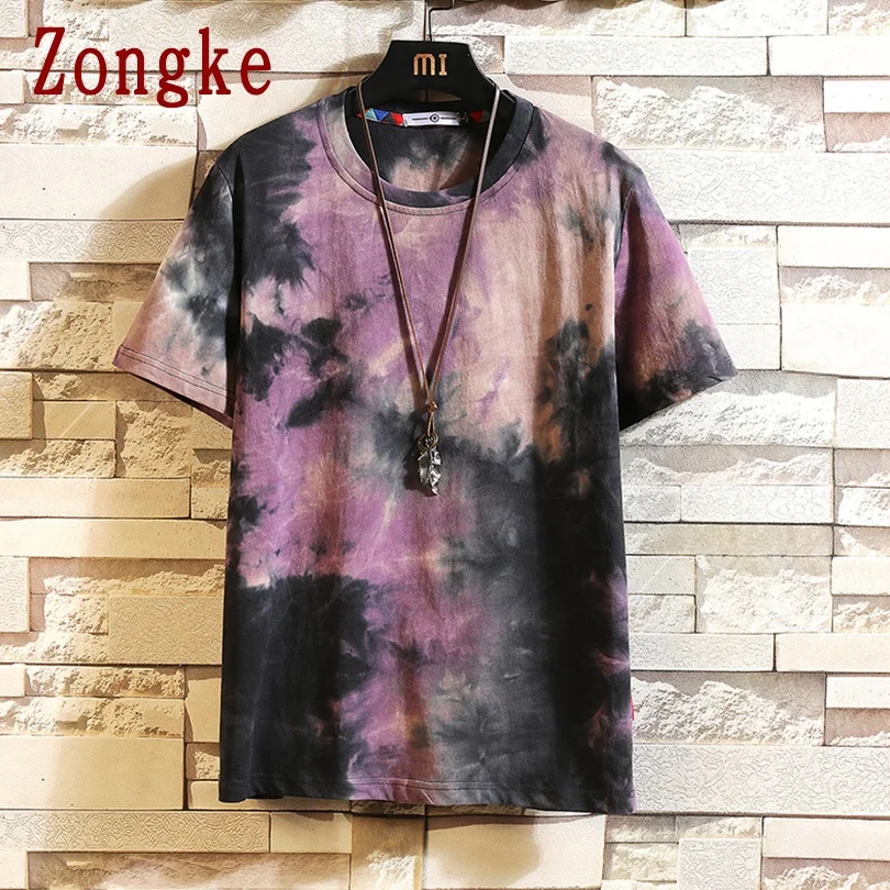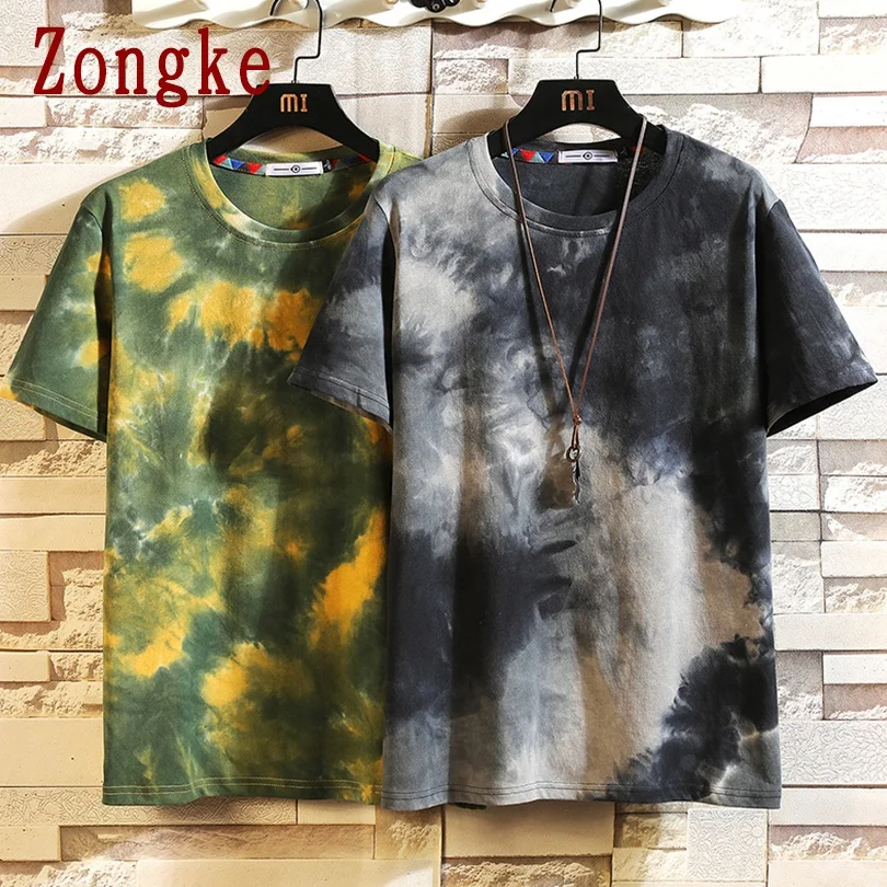 Футболка Zongke мужская с коротким рукавом, хлопковая тенниска с принтом Tie-dye, Стильная майка в японском стиле, уличная одежда, стиль Харадзюку, лето 2022