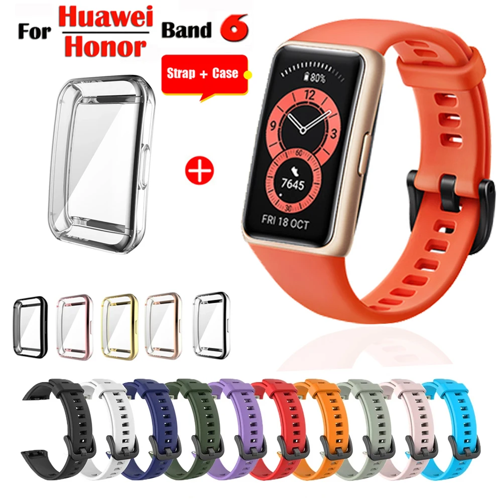 Сменный ремешок для Huawei Band 6/6 Pro, силиконовый ремешок для часов Honor Band 6, ремешок с полным защитным чехлом из ТПУ