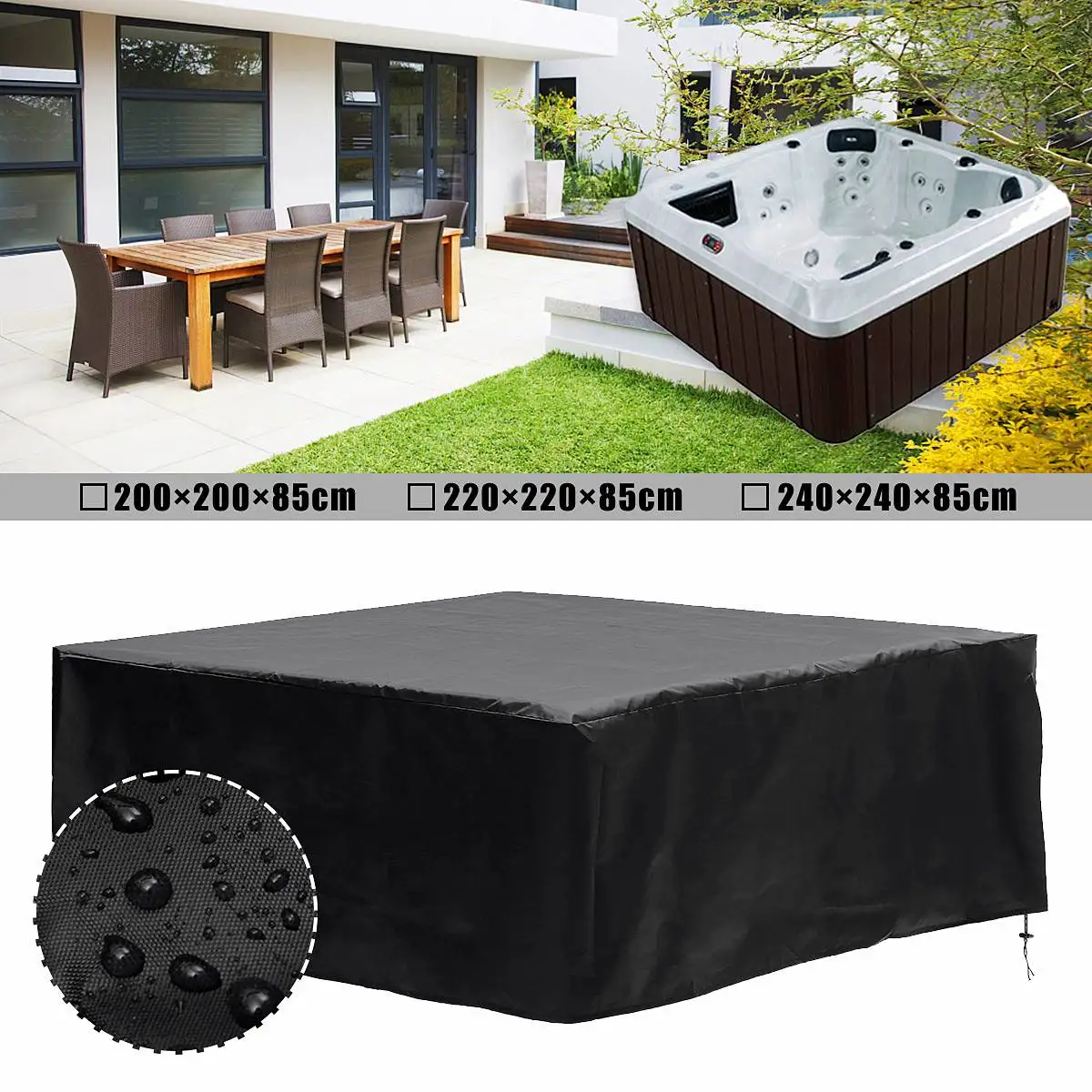 Черная крышка для ванны, квадратная Защита от УФ-лучей, спа-ванна, чехлы от пыли для стульев, защита от УФ-лучей, снега, дождя, водонепроницаемая, прочная и долговечная