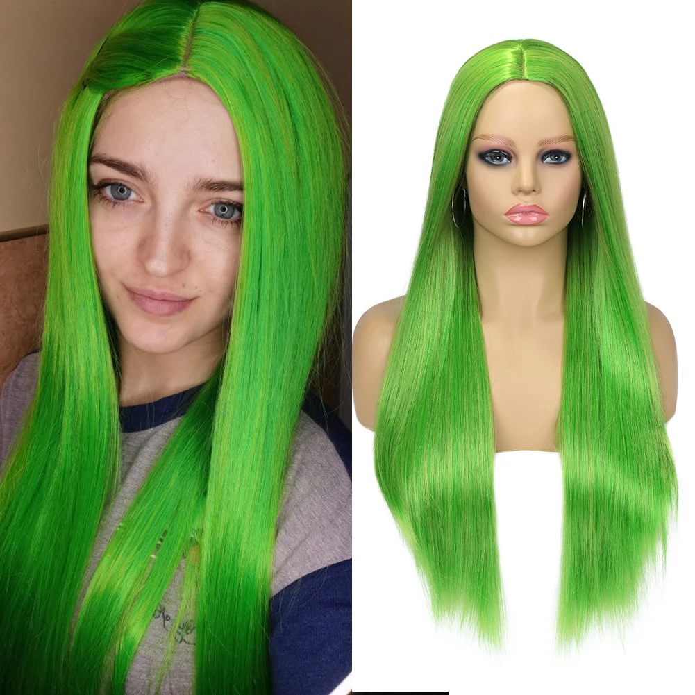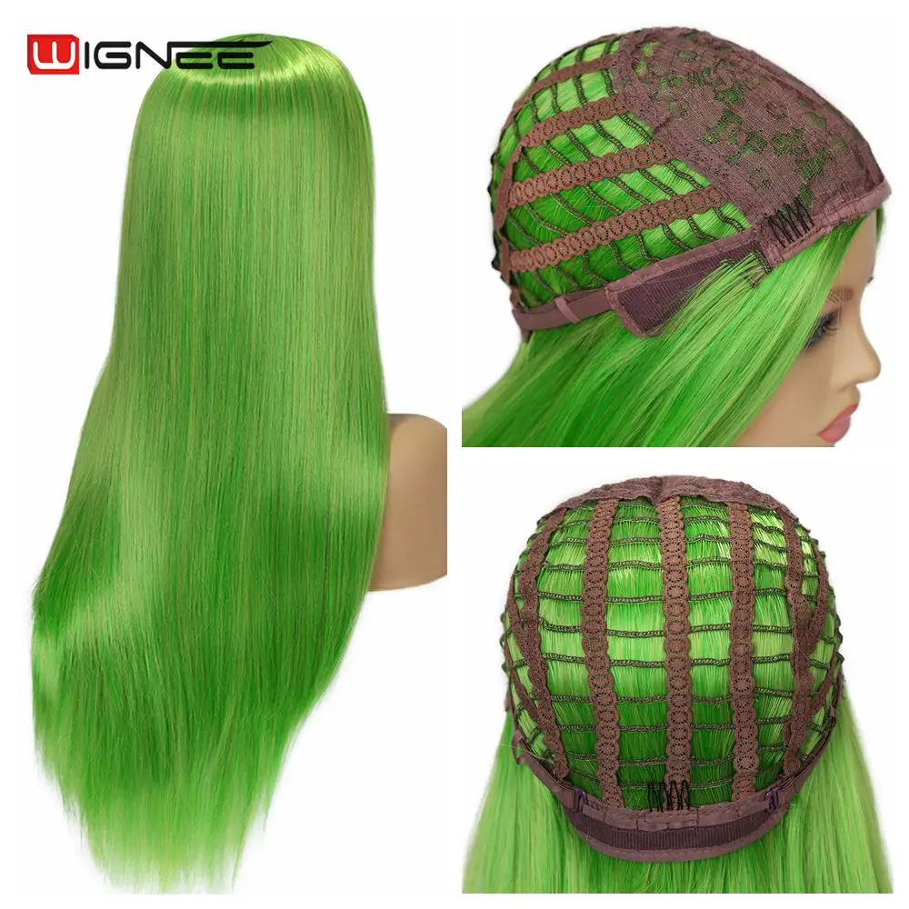 Парик Wignee прямой для женщин, зеленое синтетическое среднее синтетическое волокно, для косплея, высокотемпературное волокно, для повседневной жизни