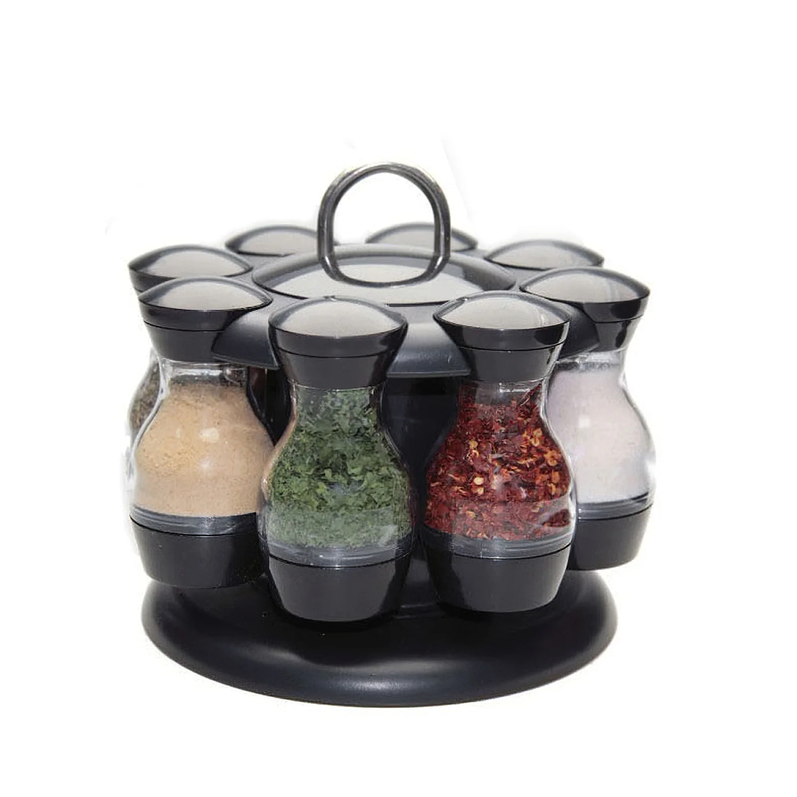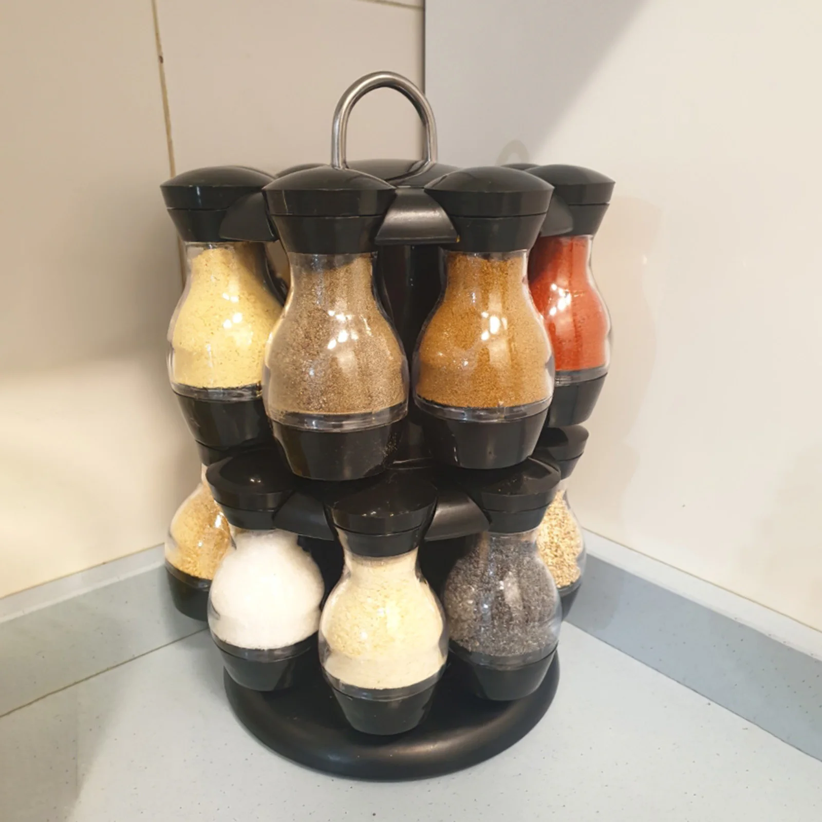 Каждая бутылка для специй имеет емкость около 100 мл. Один набор подставок для специй в виде карусели включает 16 бутылок, что обеспечивает хранение большого объема, удобно для хранения разных видов специй.