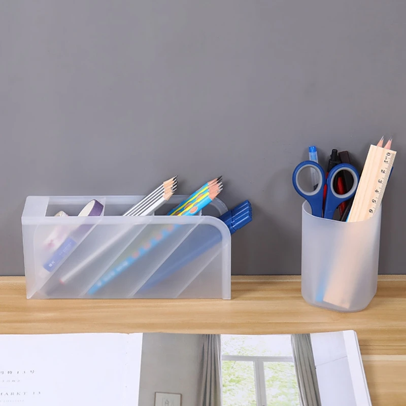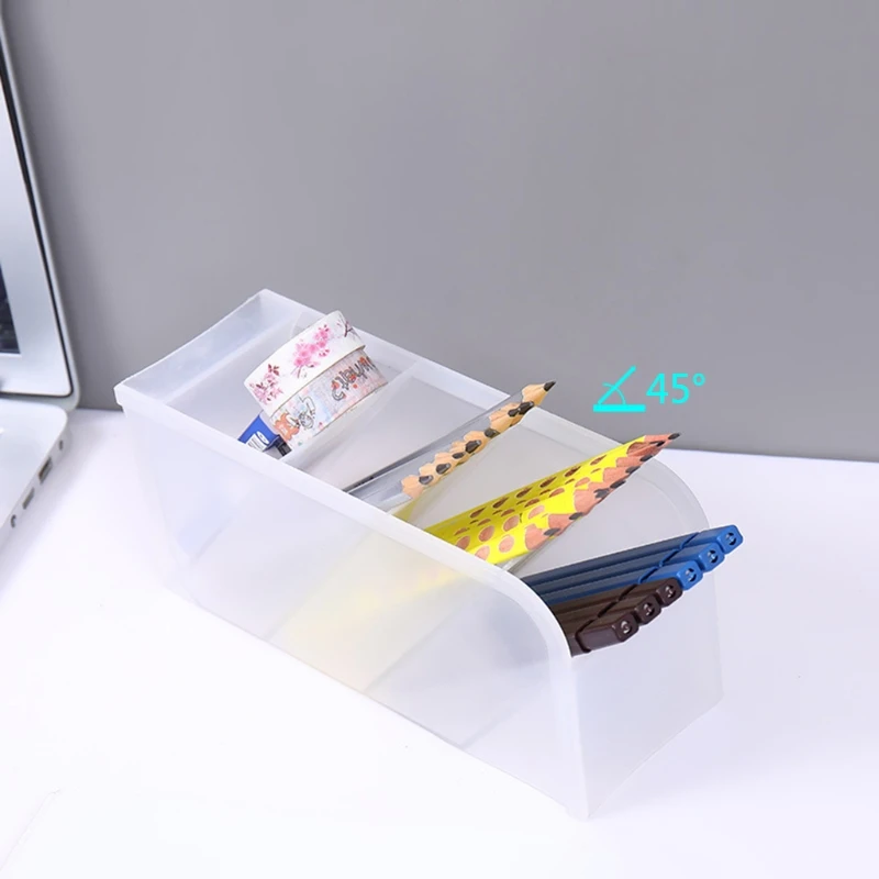 Наклонный Держатель для ручек, пластиковый ящик для хранения, прозрачный, с несколькими сетками, подставка для ручек, для хранения, креативный держатель для ручек для макияжа, настольный, для детей