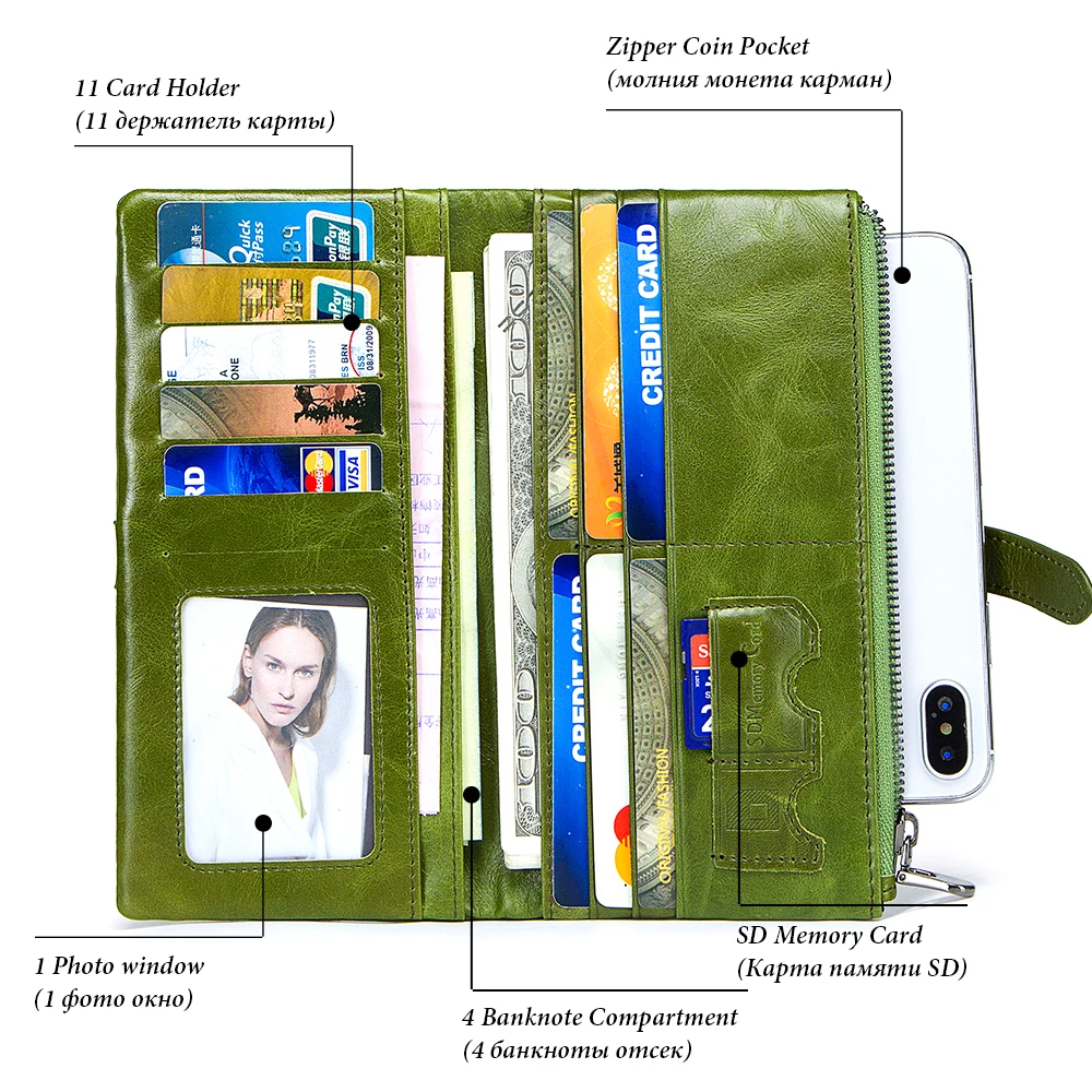 Длинный кошелек из натуральной воловьей кожи для женщин, Дамский де...