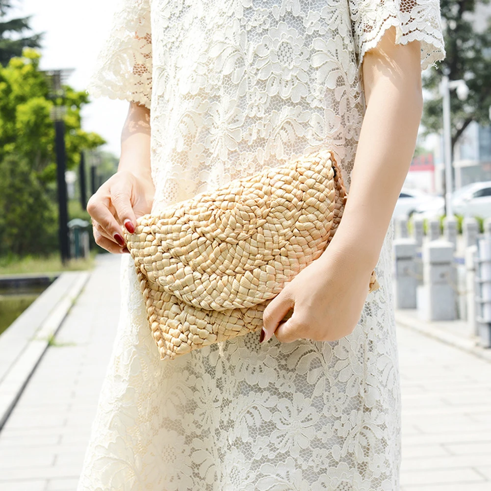 Женский клатч из кукурузной кожи, соломенный Плетеный женский кошел...