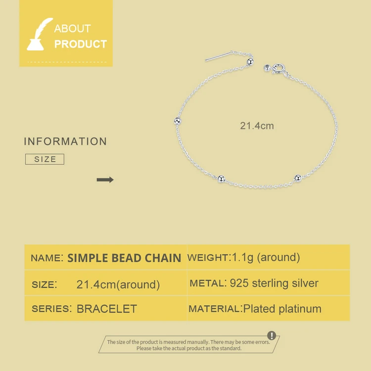 BAMOER серебрянный простой браслет-цепочка с бусинами 100% 925 проб...