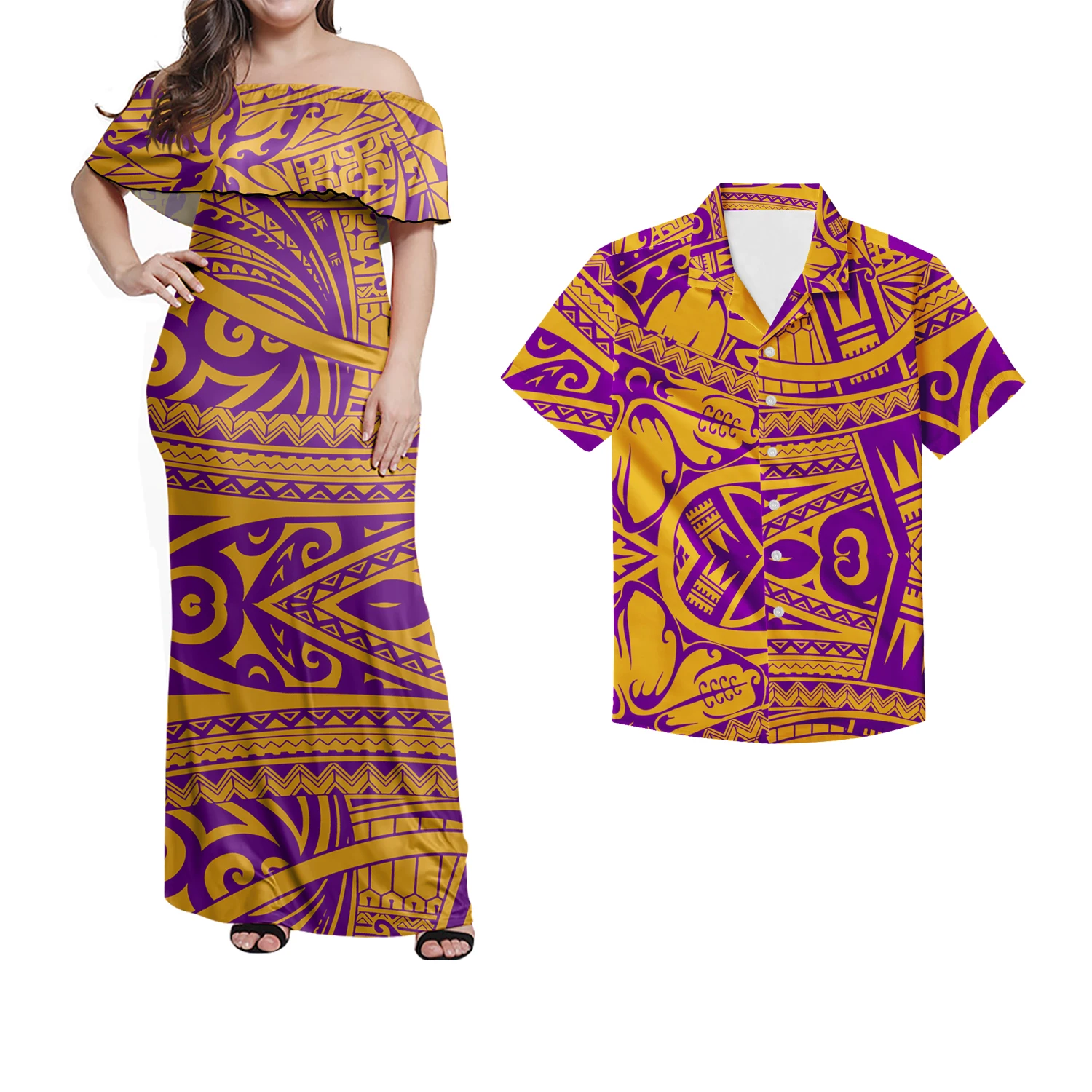 HYCOOL, оптовая продажа, 7xl, полинезийское Полосатое облегающее платье в полоску, длинное платье с оборками на одно плечо, подходящее к гавайской рубашке, одежда для пар