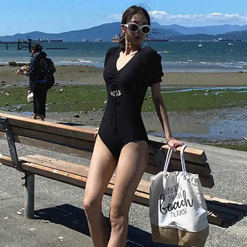 2021 сексуальный корейский новый стиль с коротким рукавом треугольник кусок V-образный вырез кулиска сексуальная тонкая грудь Собранный женский горячий весенний купальник