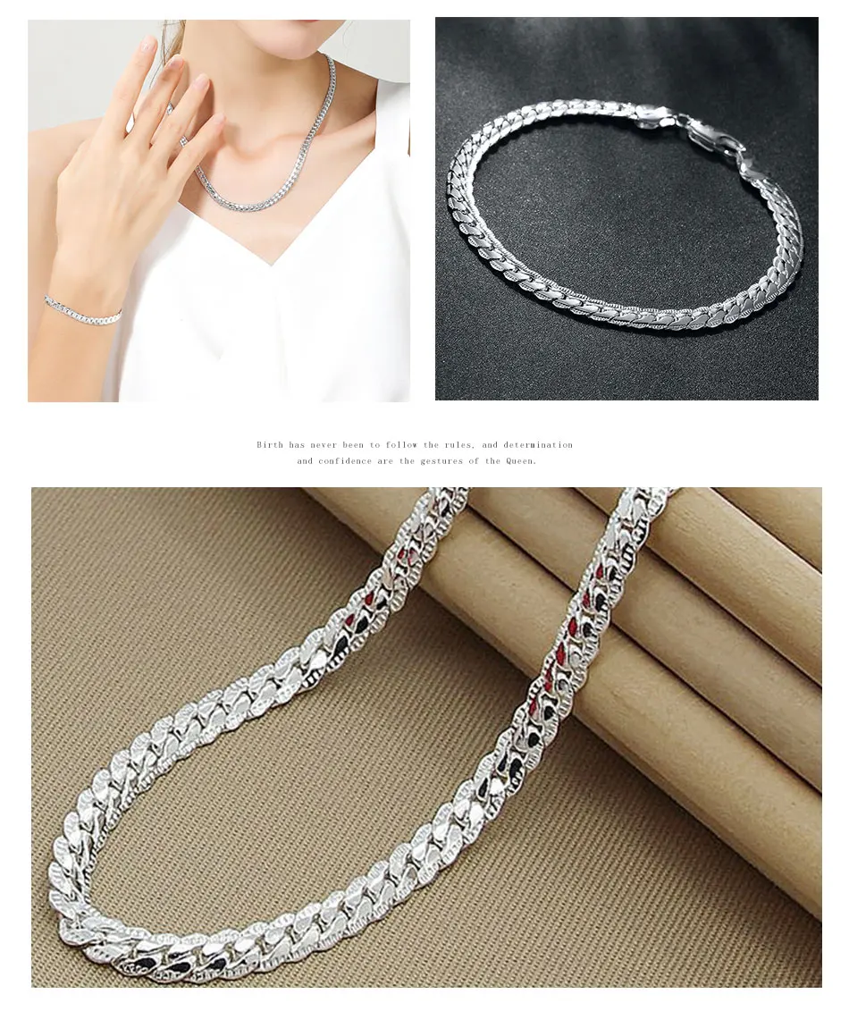 925 серебро 6 мм боком ожерелье цепь Шарм браслет набор для женщин мужчин мода свадебный подарок