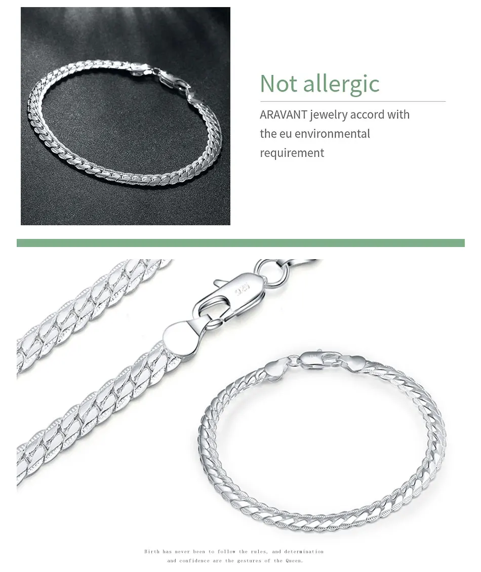 925 серебро 6 мм боковое ожерелье цепочка Шарм браслет набор для женщин мужчин Модный свадебный подарок