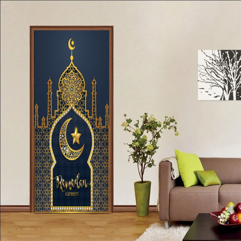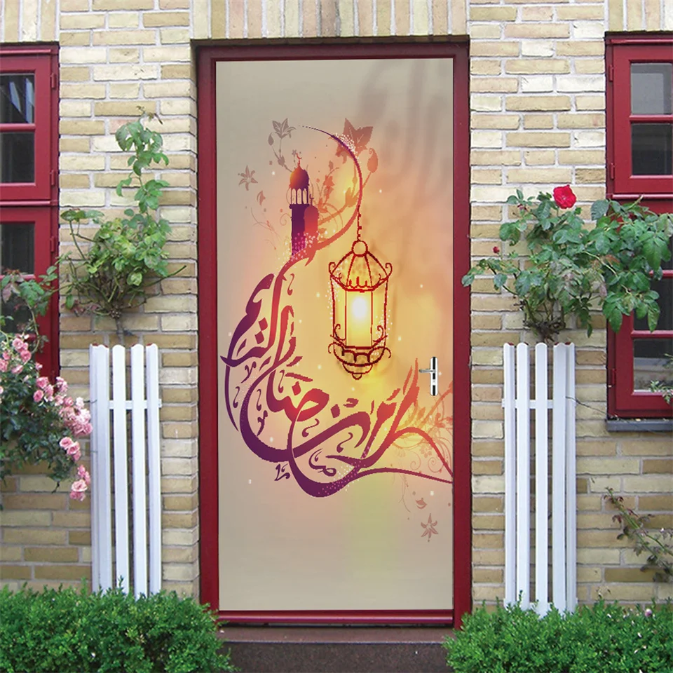 2 шт.компл.изготовление размеров под заказ Рамадан ИД декорационные обои для двери Самоклеящиеся DIY настенные дизайн дома декор плакат для Спальня
