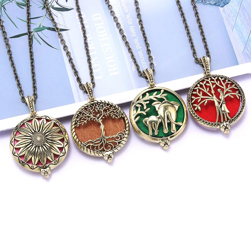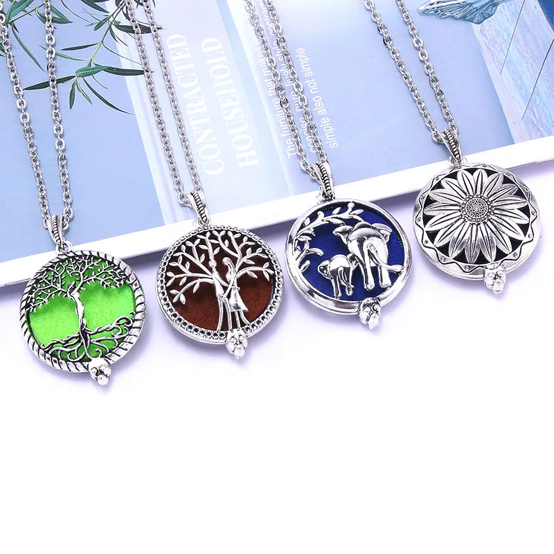 Ожерелье для ароматерапии, винтажное ожерелье с цветами Древа Жизни, открытые Медальоны Подвеска эфирного масла, диффузор, аромадиффузор, ожерелье