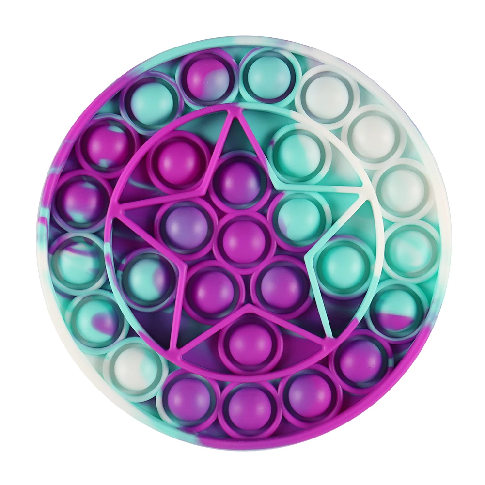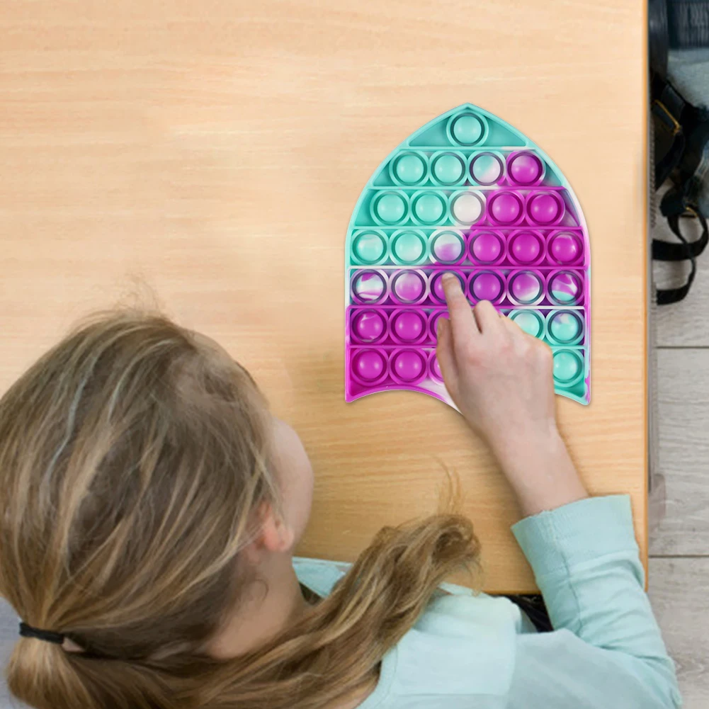 При нажатии пузырьки слегка звучат. Затем переверните его и начните снова! Бесконечно многоразовые и моющиеся.