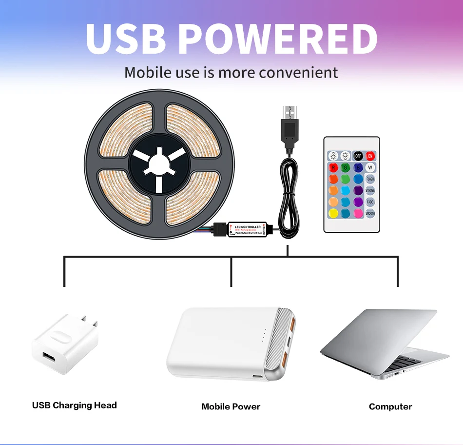 1 x Светодиодная лента USBИ24-клавишный ИК-пульт дистанционного управления