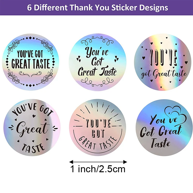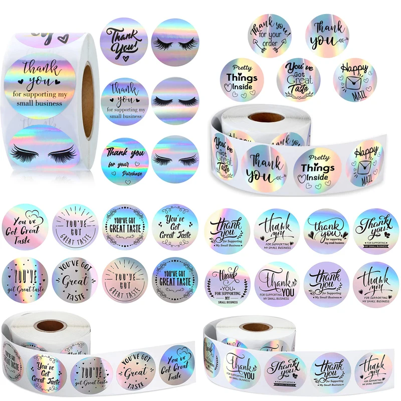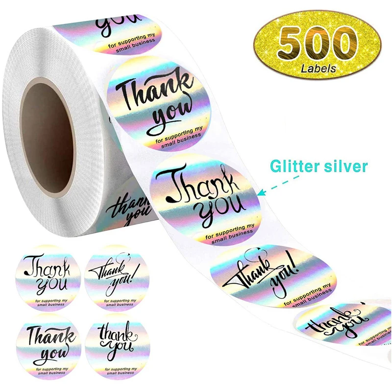 Наклейки с благодарностью, 500 шт., голографические серебряные радужные наклейки с отличным вкусом, подарок этикетки для печати для упаковки конвертов в магазин