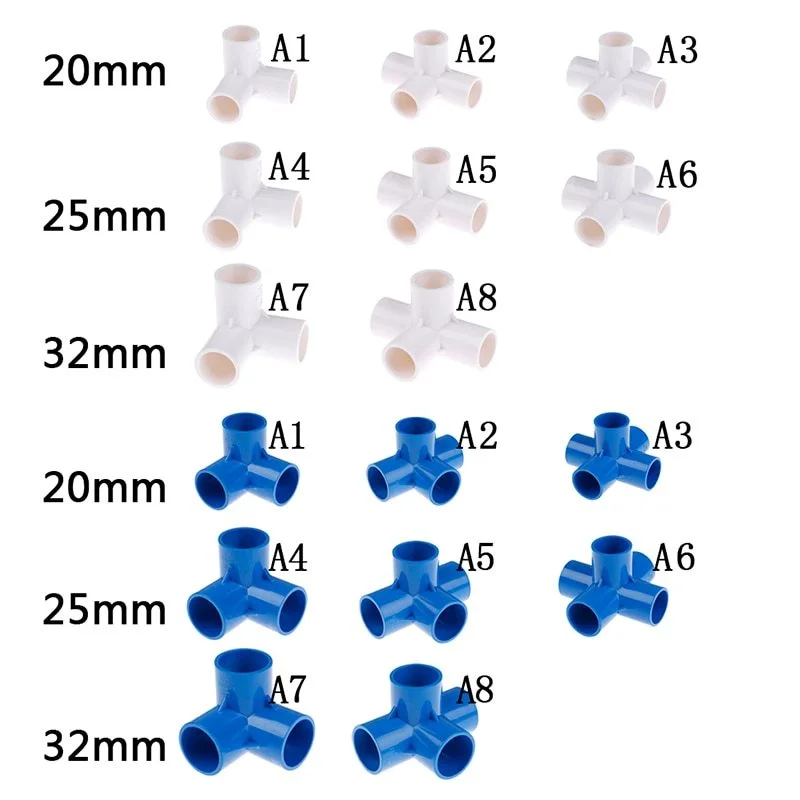 Особенности: 100% Новинка и высокое качество Номер модели: фитинг для труб из ПВХ Цвет: белый/серый/синий Характеристики: 20/25 / 32 мм Способ соединения: Адгезия Клея Функция продукта: соединения труб из ПВХ, стеллажи, ручная работа Упаковка включает: 1 шт. X соединители для труб